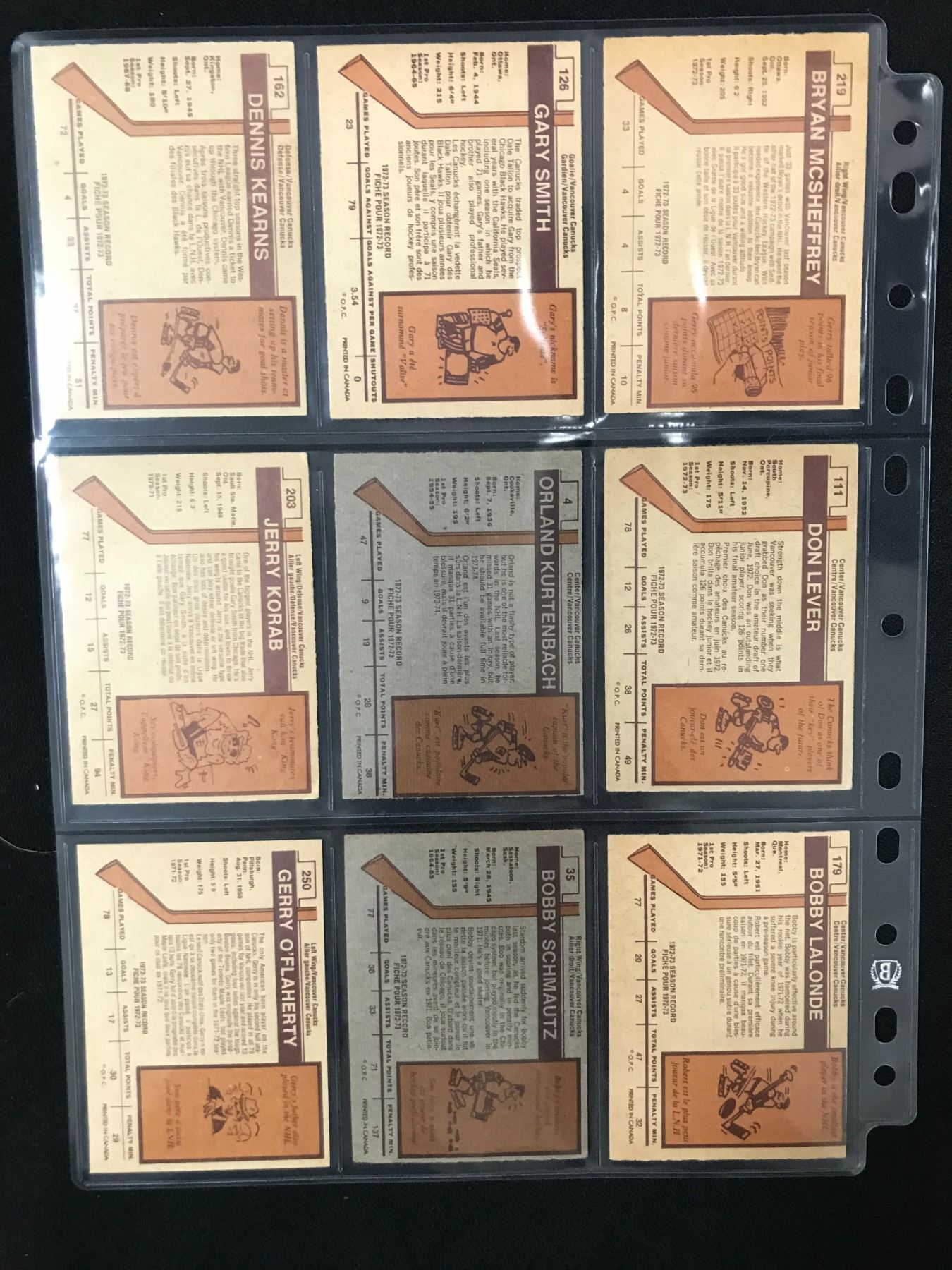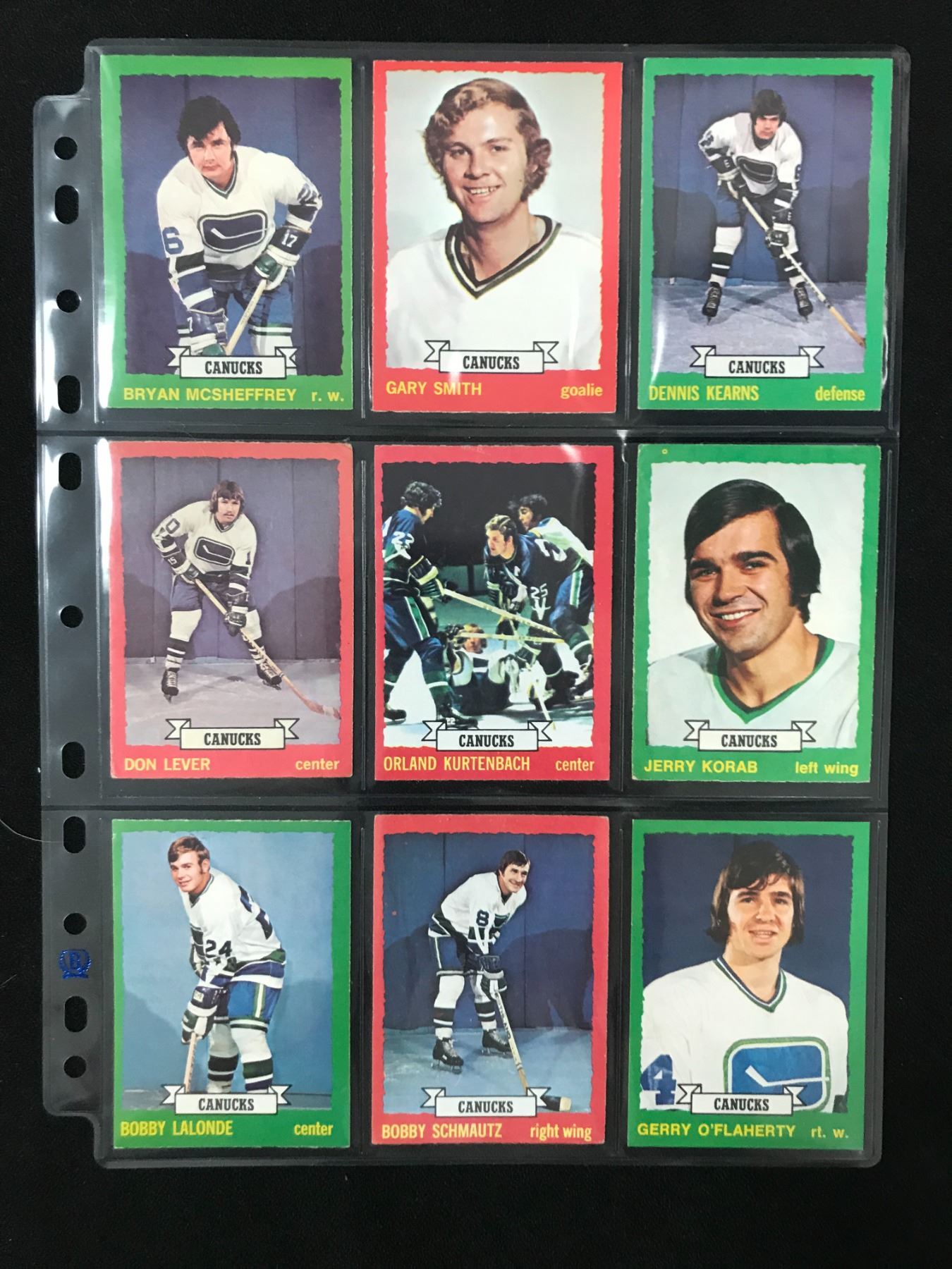 LOT OF 9 VINTAGE 1973-74 OPC/TOPPS VANCOUVER CANUCKS INCLUDES ROOKIES