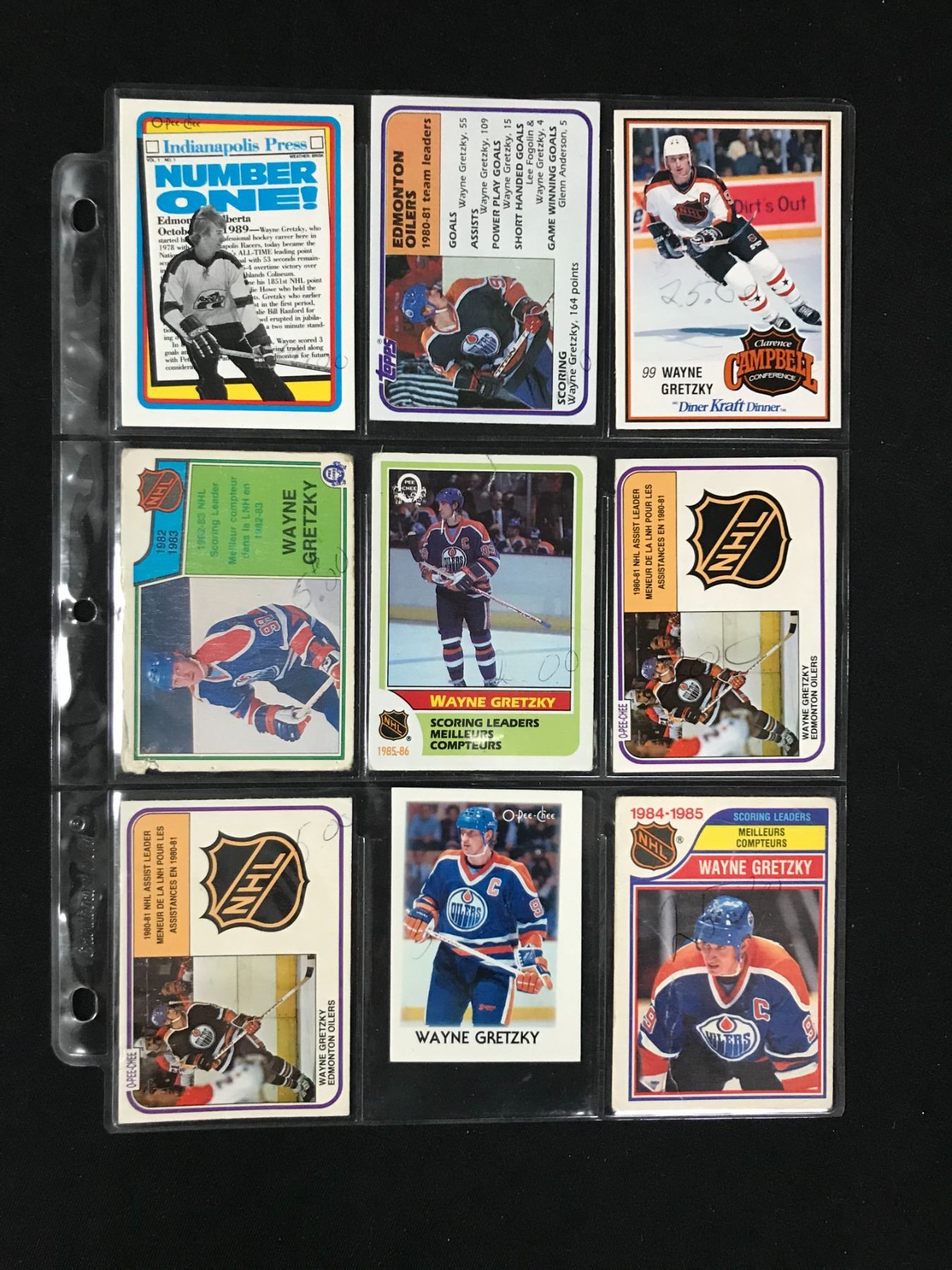 LOT OF 9 VINTAGE WAYNE GRETZKY HOCKEY CARDS