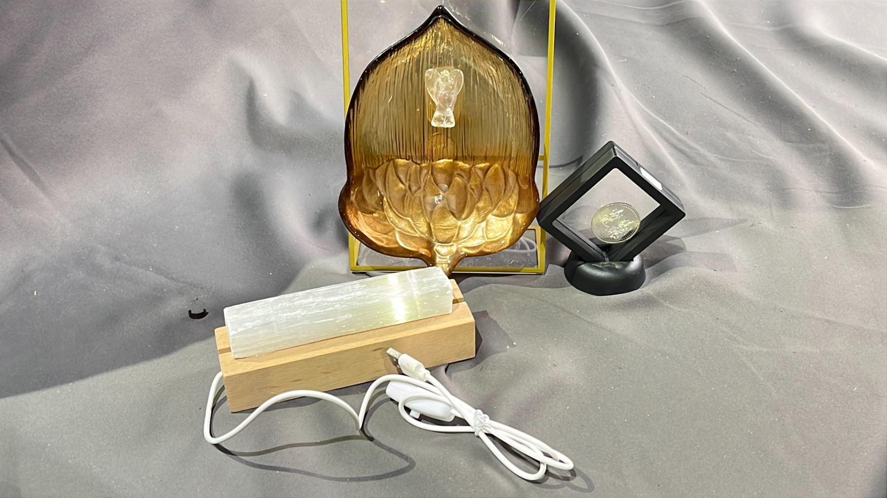 LOT OF ACORN DISPLAY RETAIL $350, GANESH COIN AND SELENITE LED LIGHT RETAIL $350