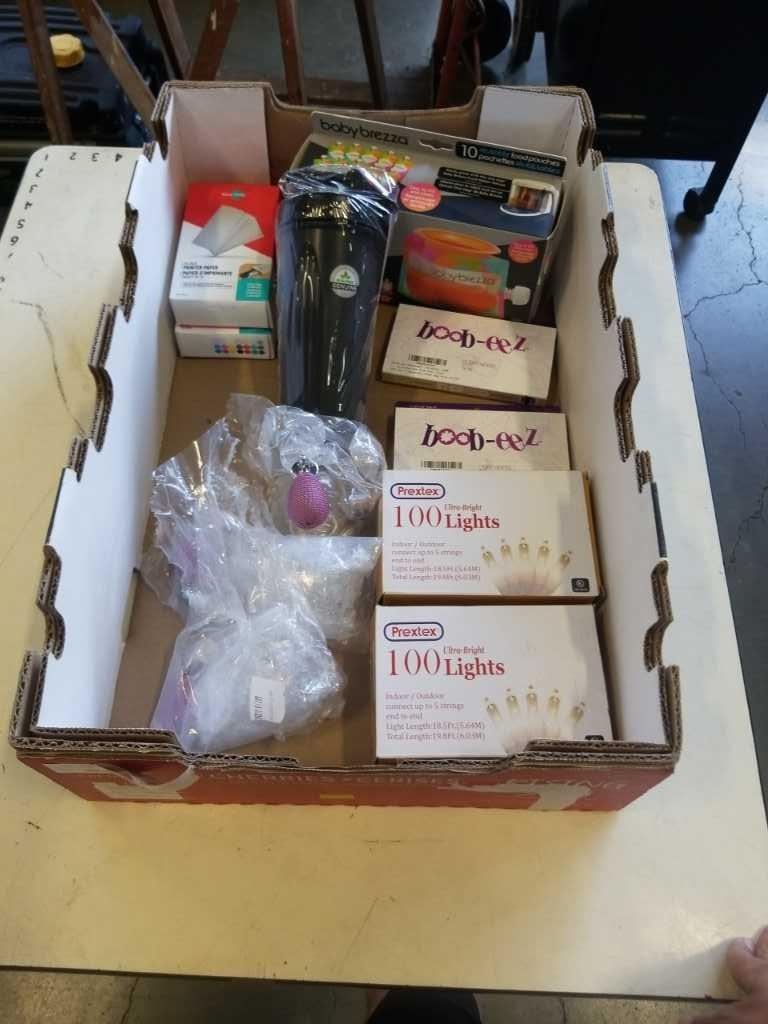 LOT OF AMAZON ITEMS - STRING LIGHTS, BLENDER BOTTLE, FOOD POUCHES, ETC