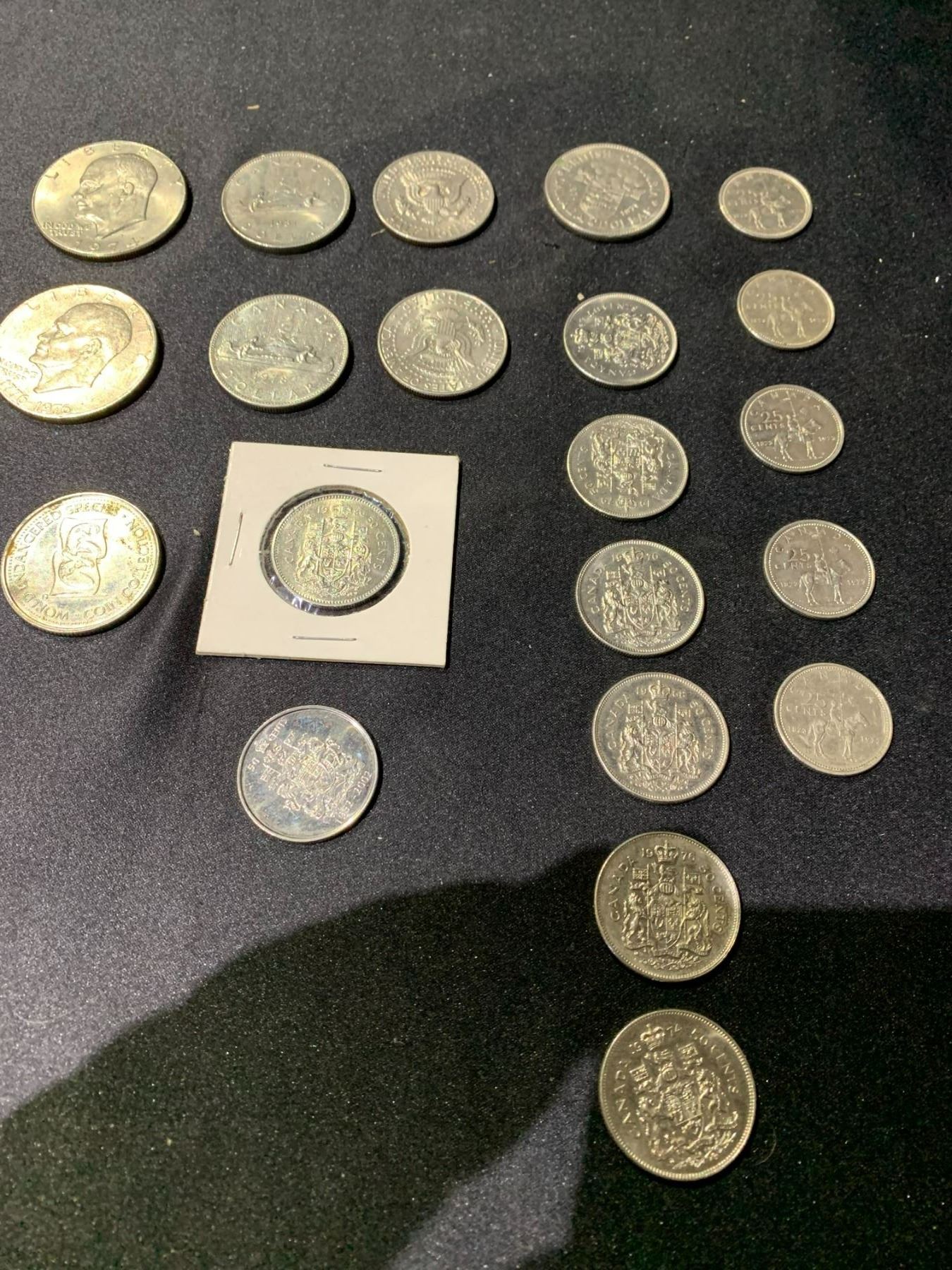 LOT OF AMERICAN, CANADIAN 50CENT PIECES AND CENTENNIAL QUARTERS