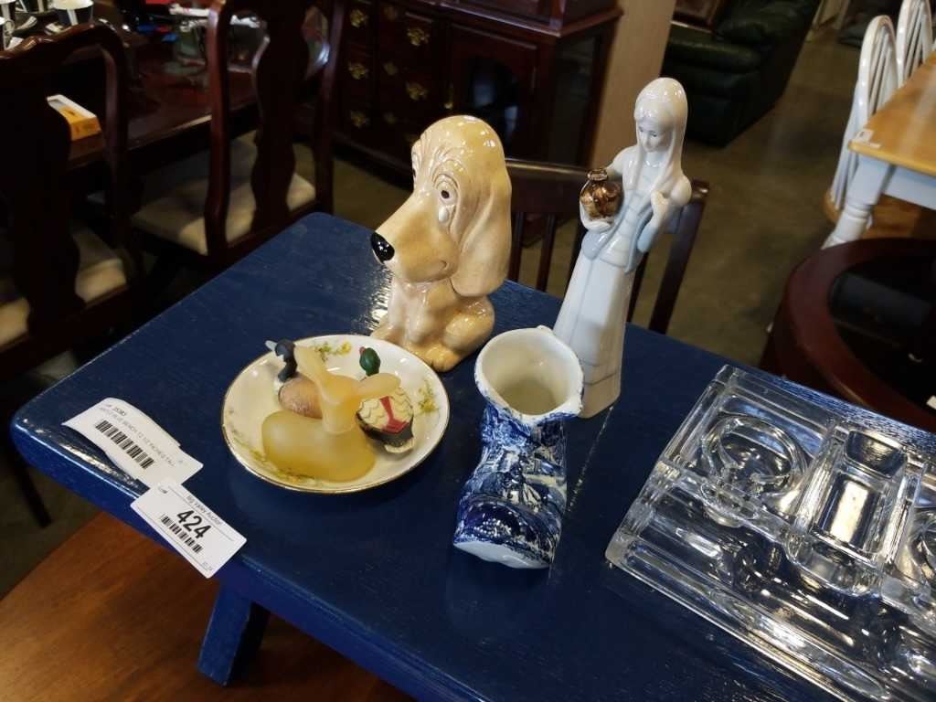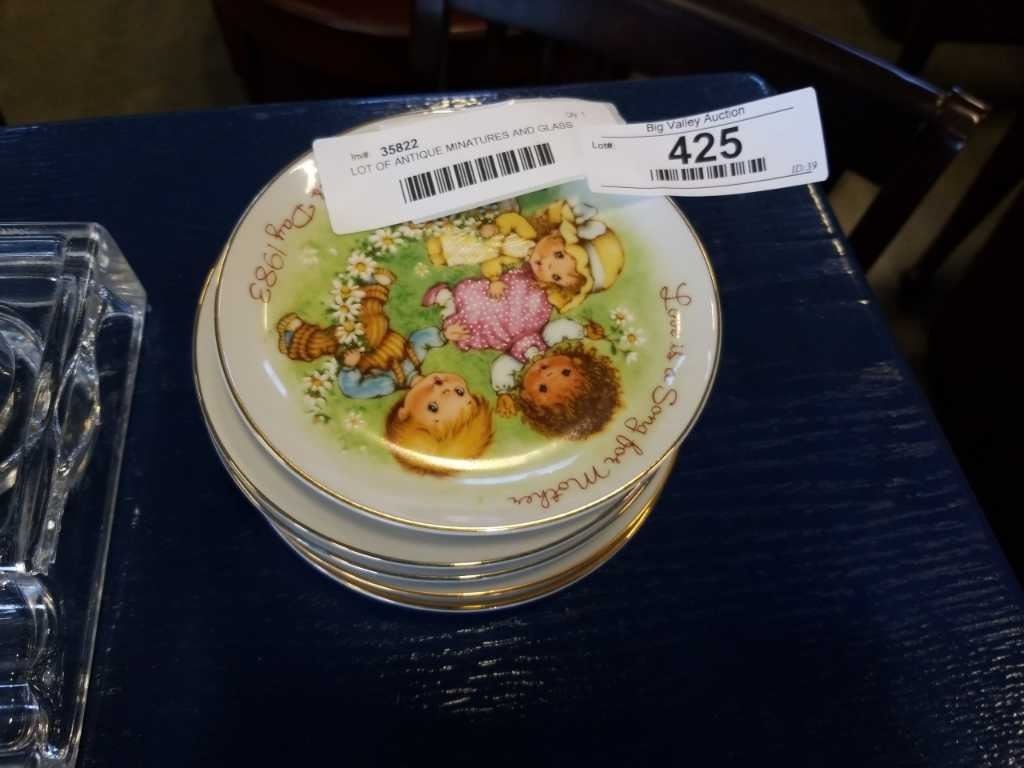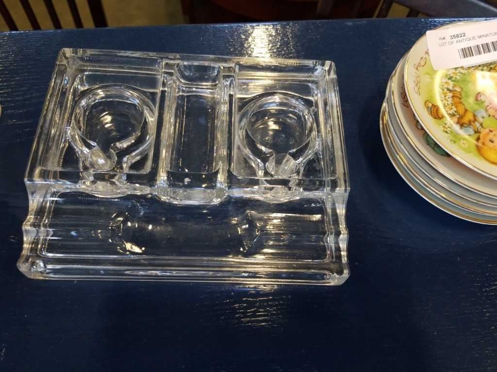 LOT OF ANTIQUE MINIATURES AND GLASS INK WELL BASE