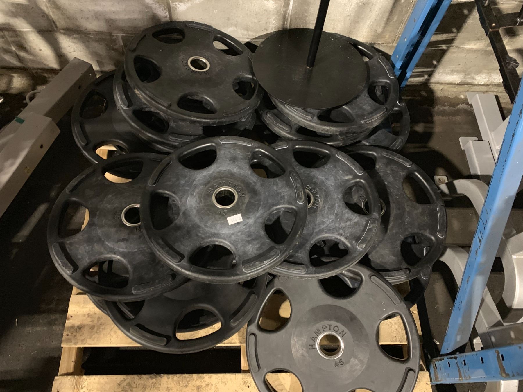 LOT OF APPROX. 16 COMMERCIAL HAMPTON 45LB FREE WEIGHTS