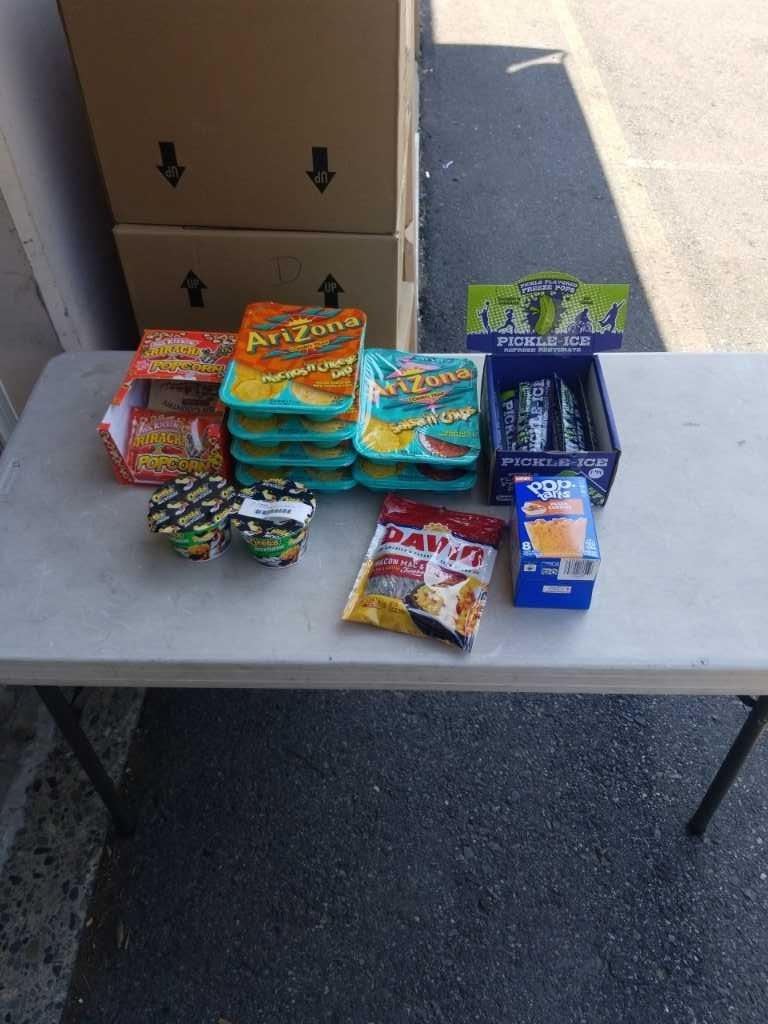 LOT OF ARIZON NACHO KITS, SIRACHA POPCORN, PICKLE FREEZER POPS, POP TARTS, MAC AND CHEESE, FLAVOURED