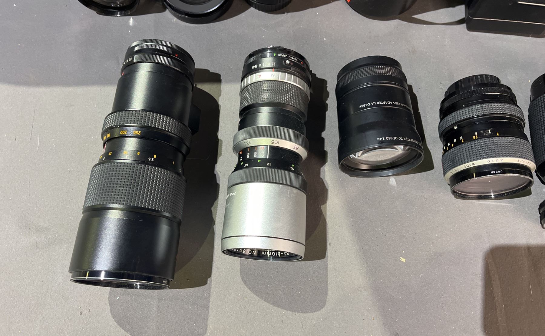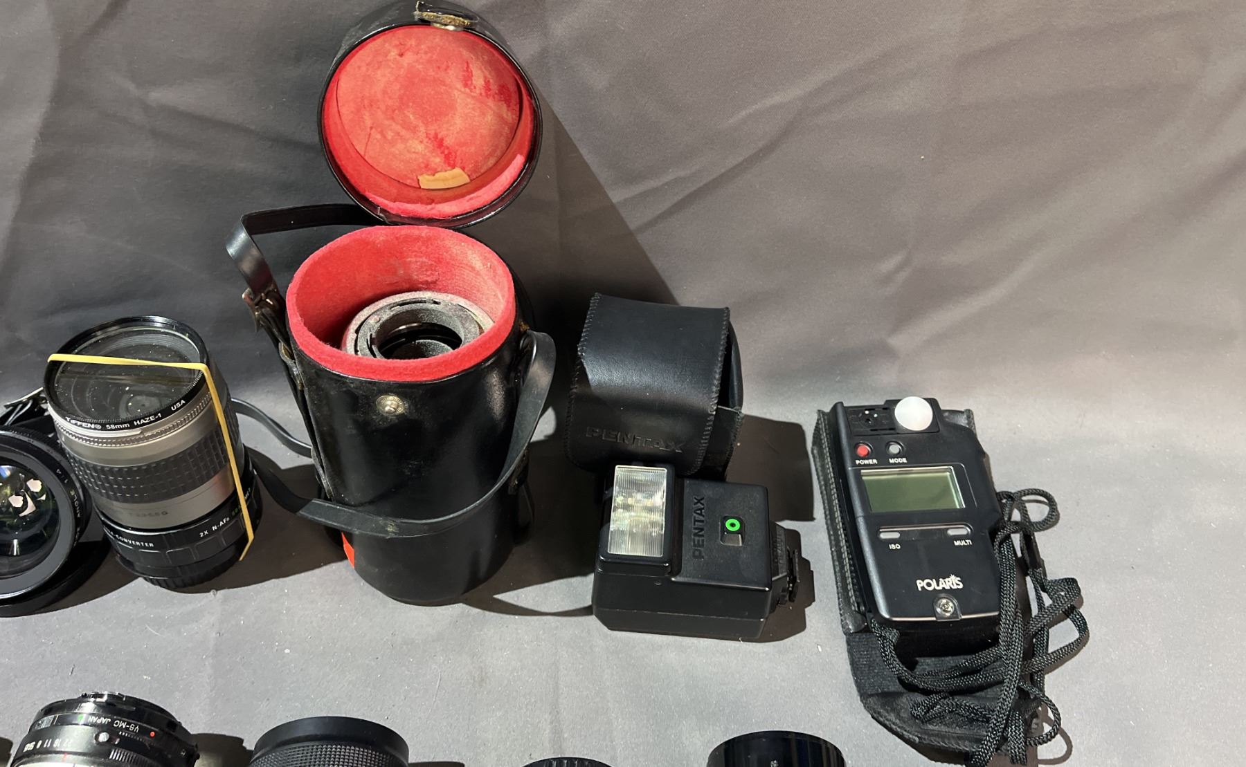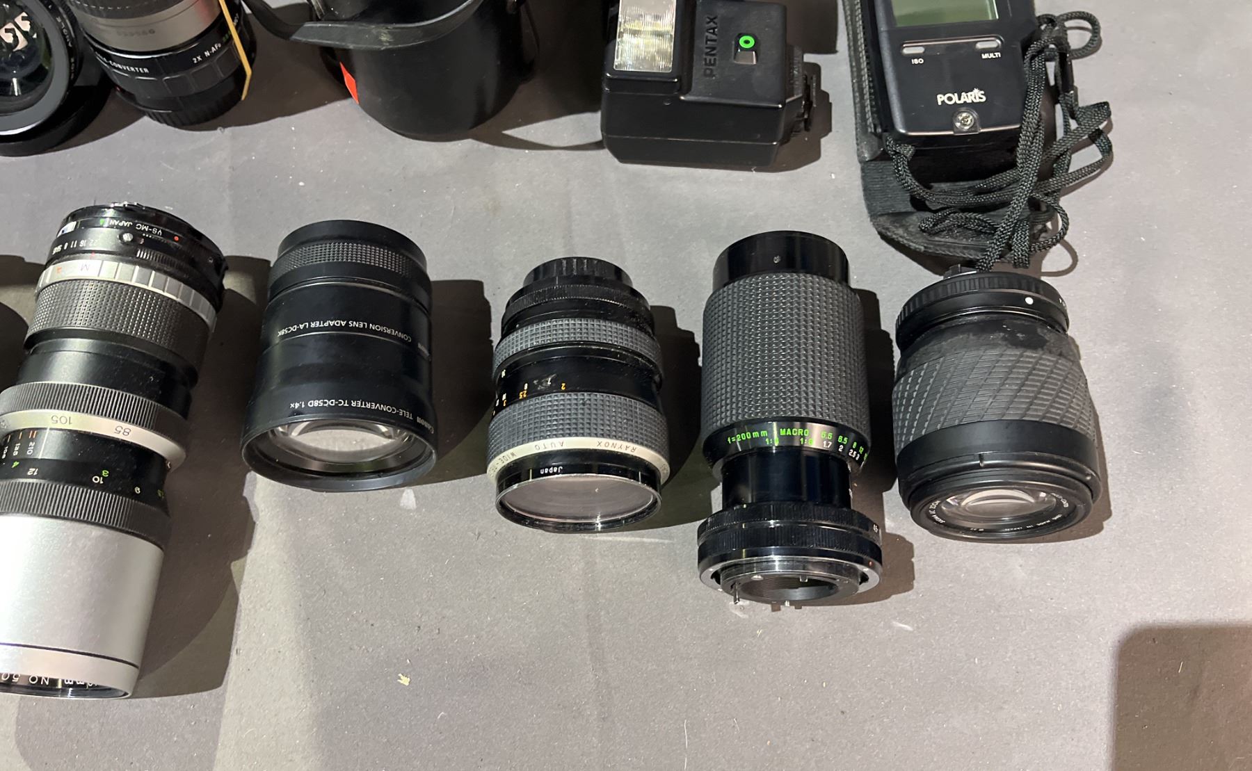 LOT OF ASSORTED CAMERA LENSES & FLASH ATTACHMENTS