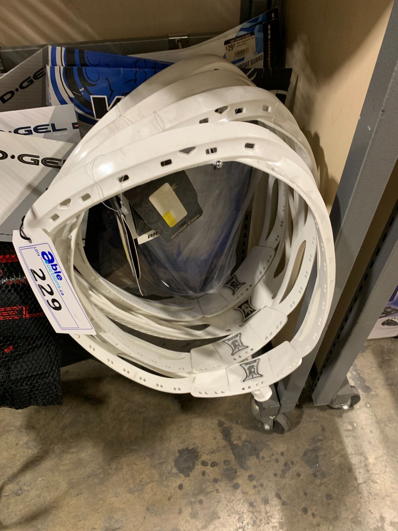 LOT OF ASSORTED GOALIE THROAT GUARDS & LACROSSE GOALIE STICK FRAMES