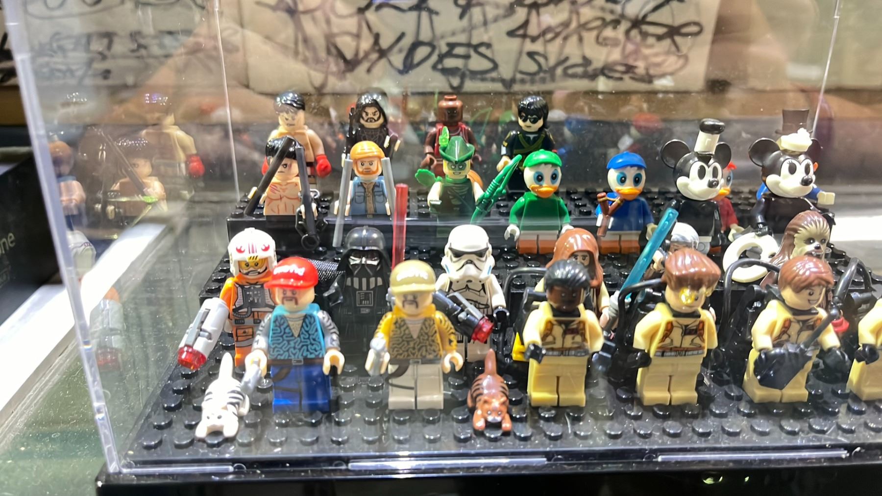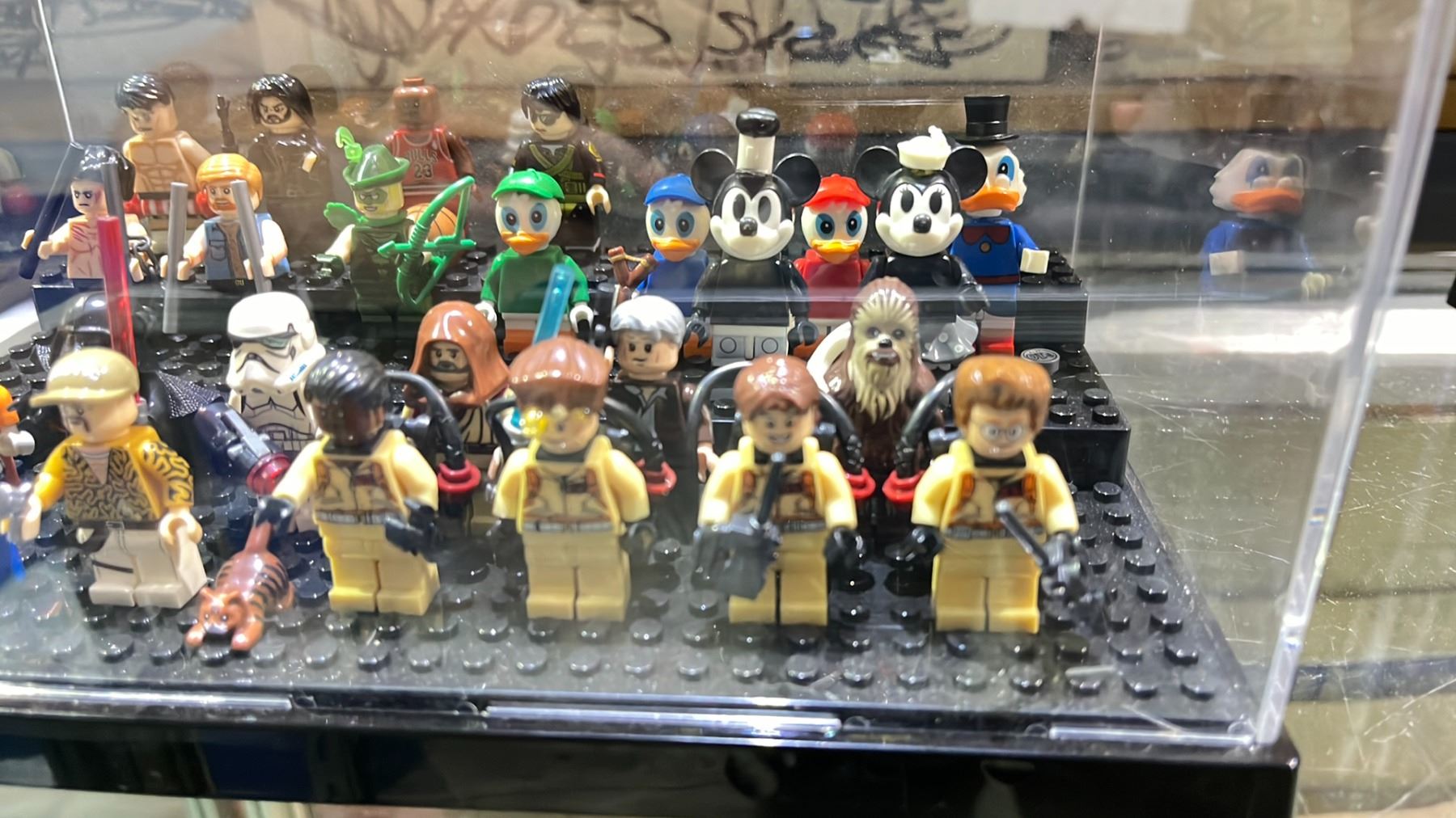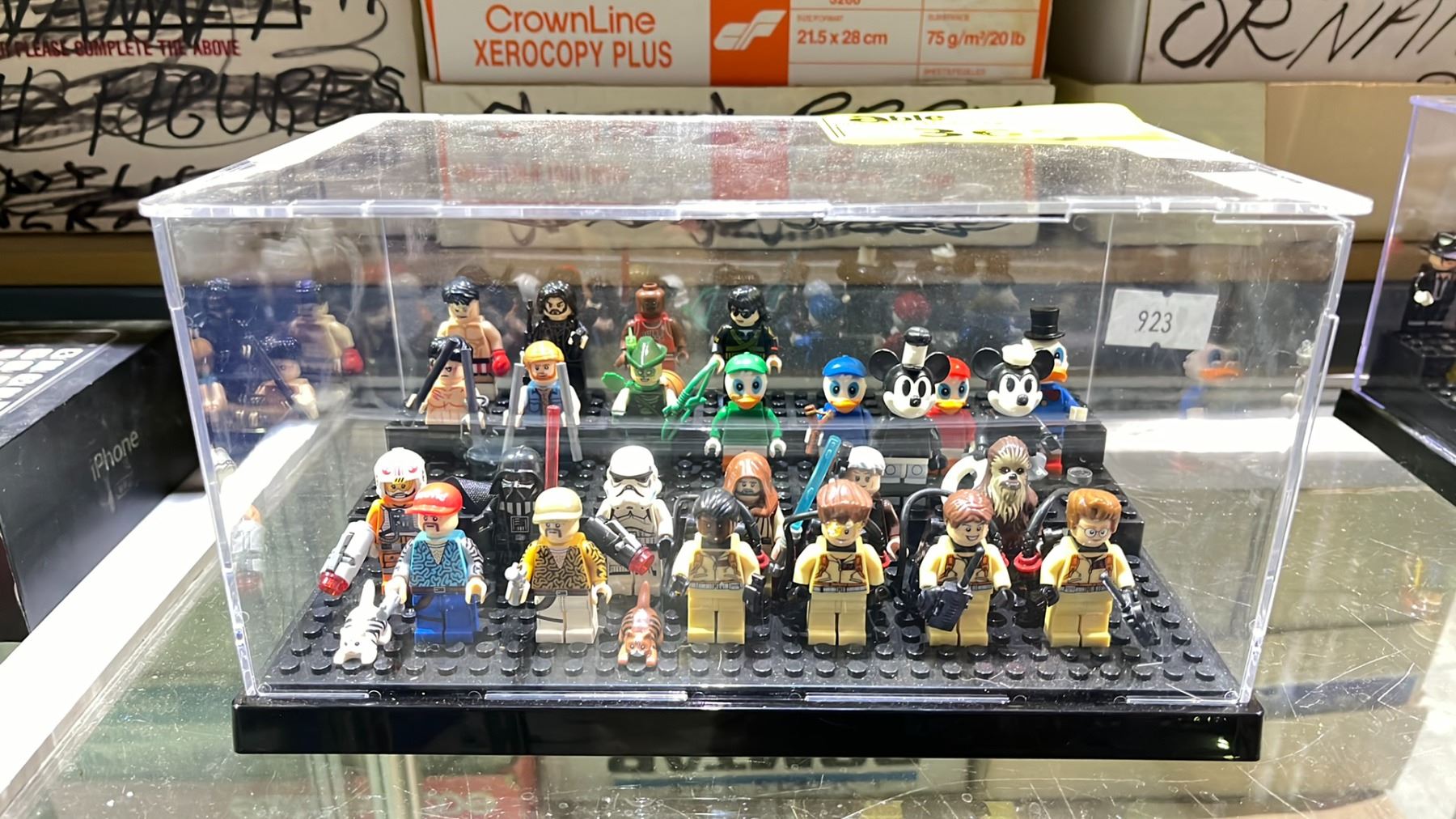 LOT OF ASSORTED LEGO FIGURES IN DISPLAY CASE