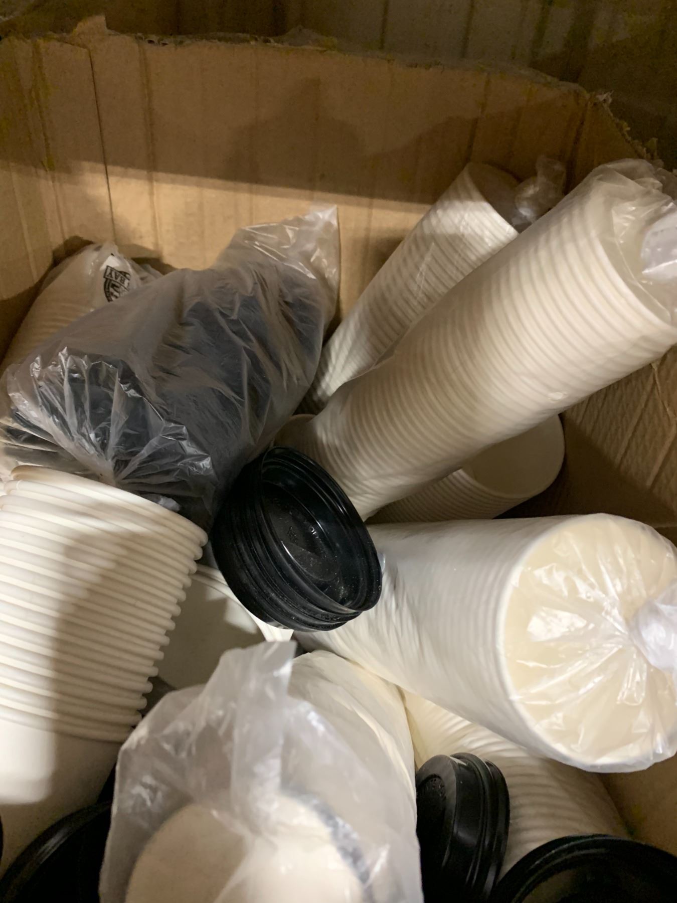 LOT OF ASSORTED LIONS BAY 8OZ, 4OZ & 12 OZ CUPS & VARIOUS LIDS