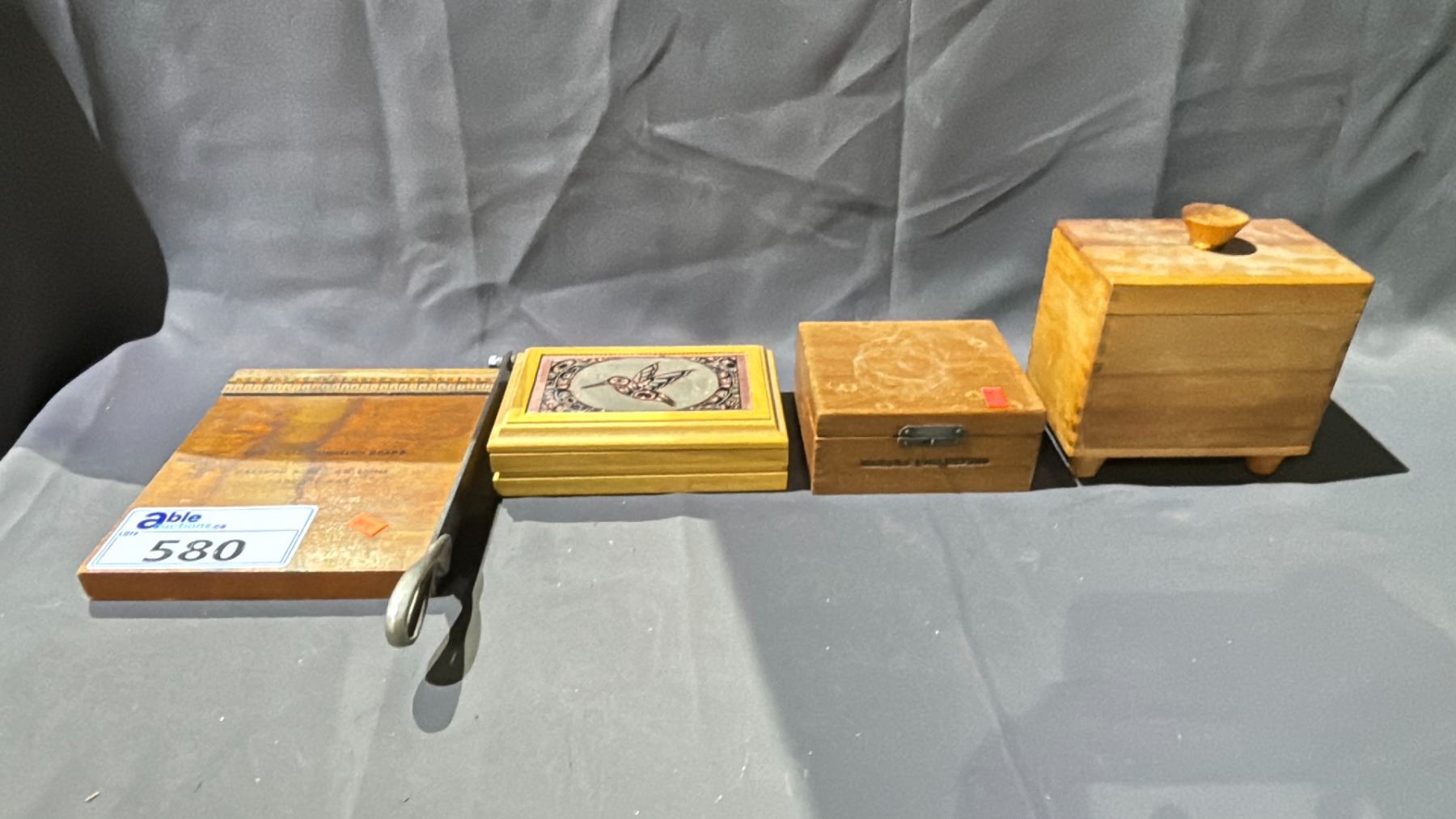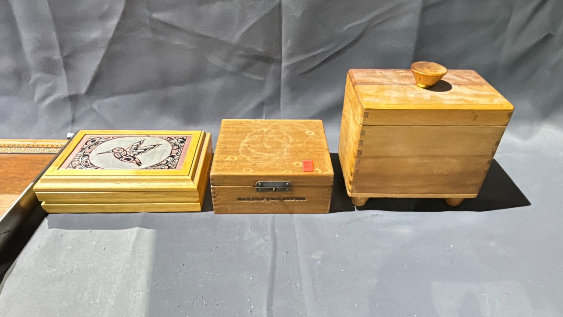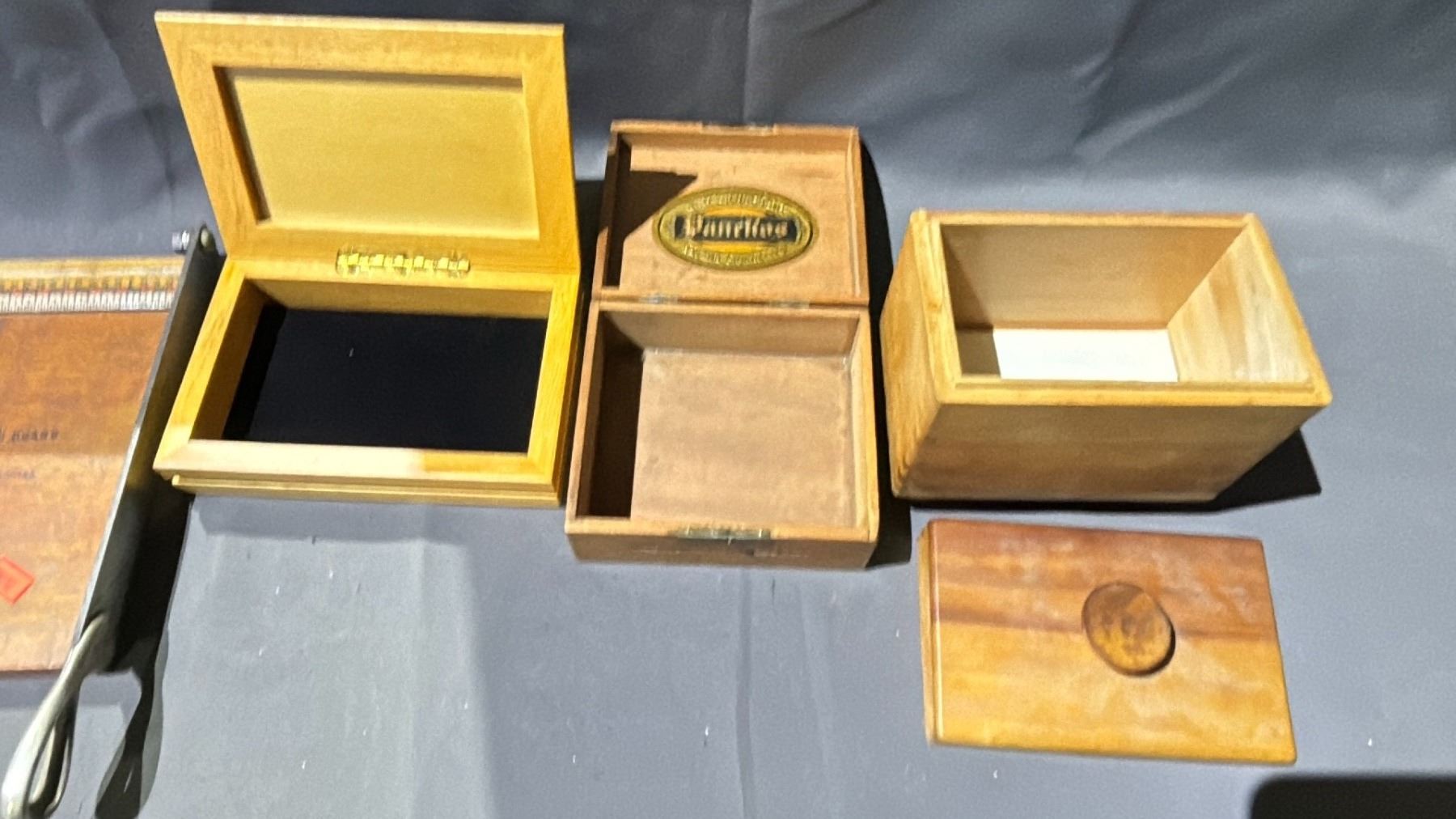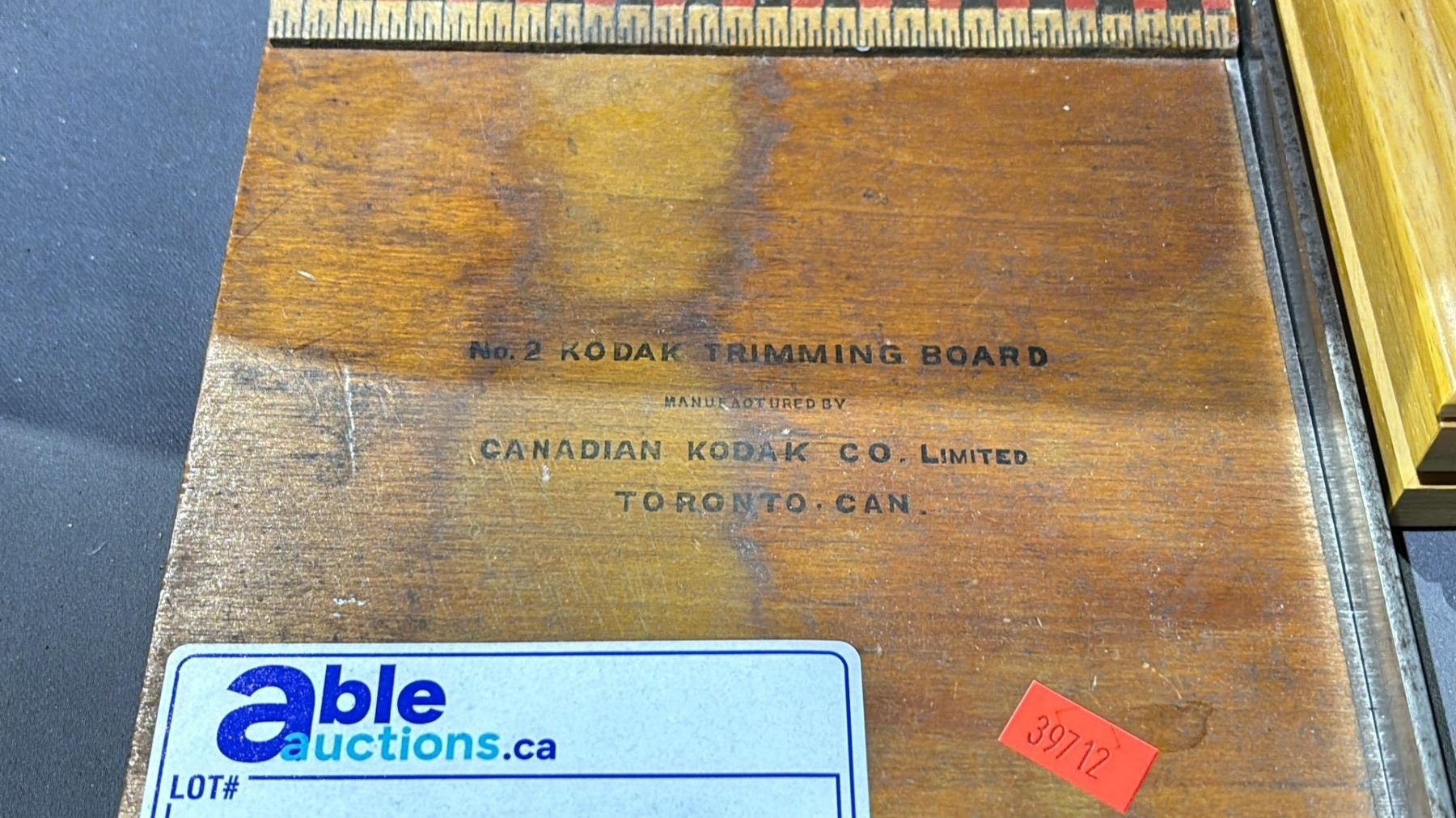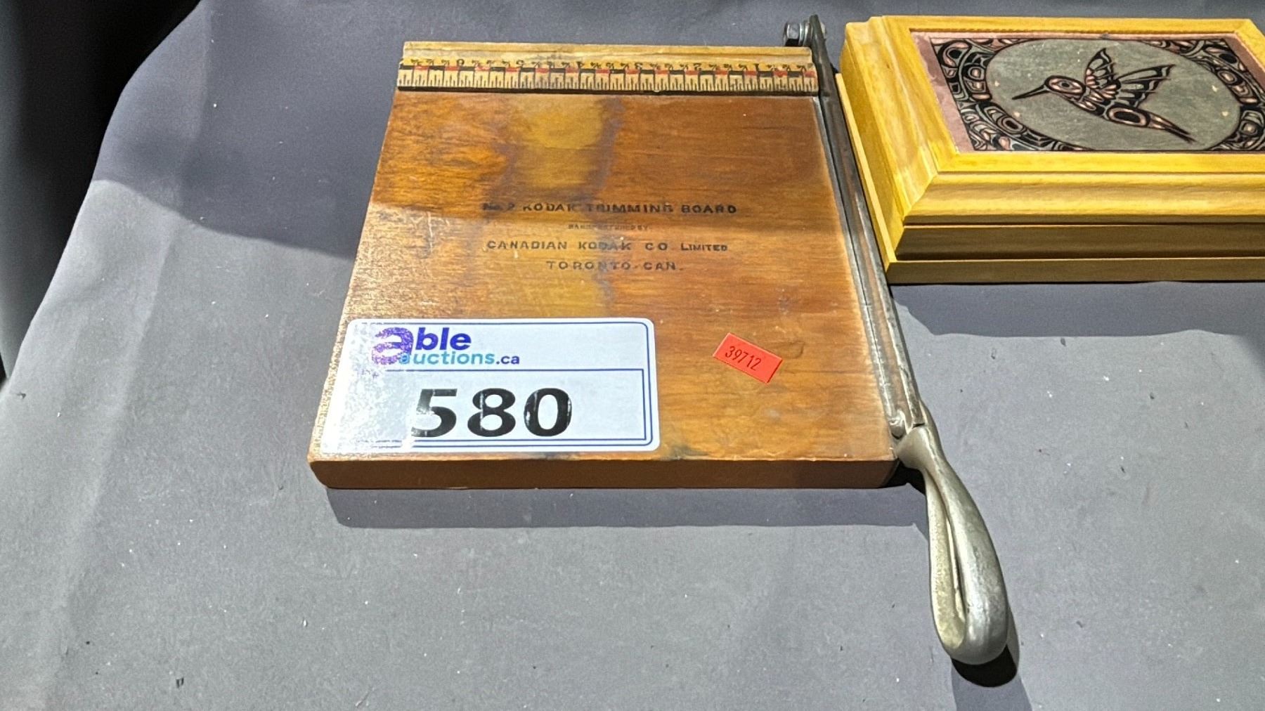 LOT OF ASSORTED SMALL WOOD CONTAINERS & NO. 2 KODAK TRIMMING BOARD