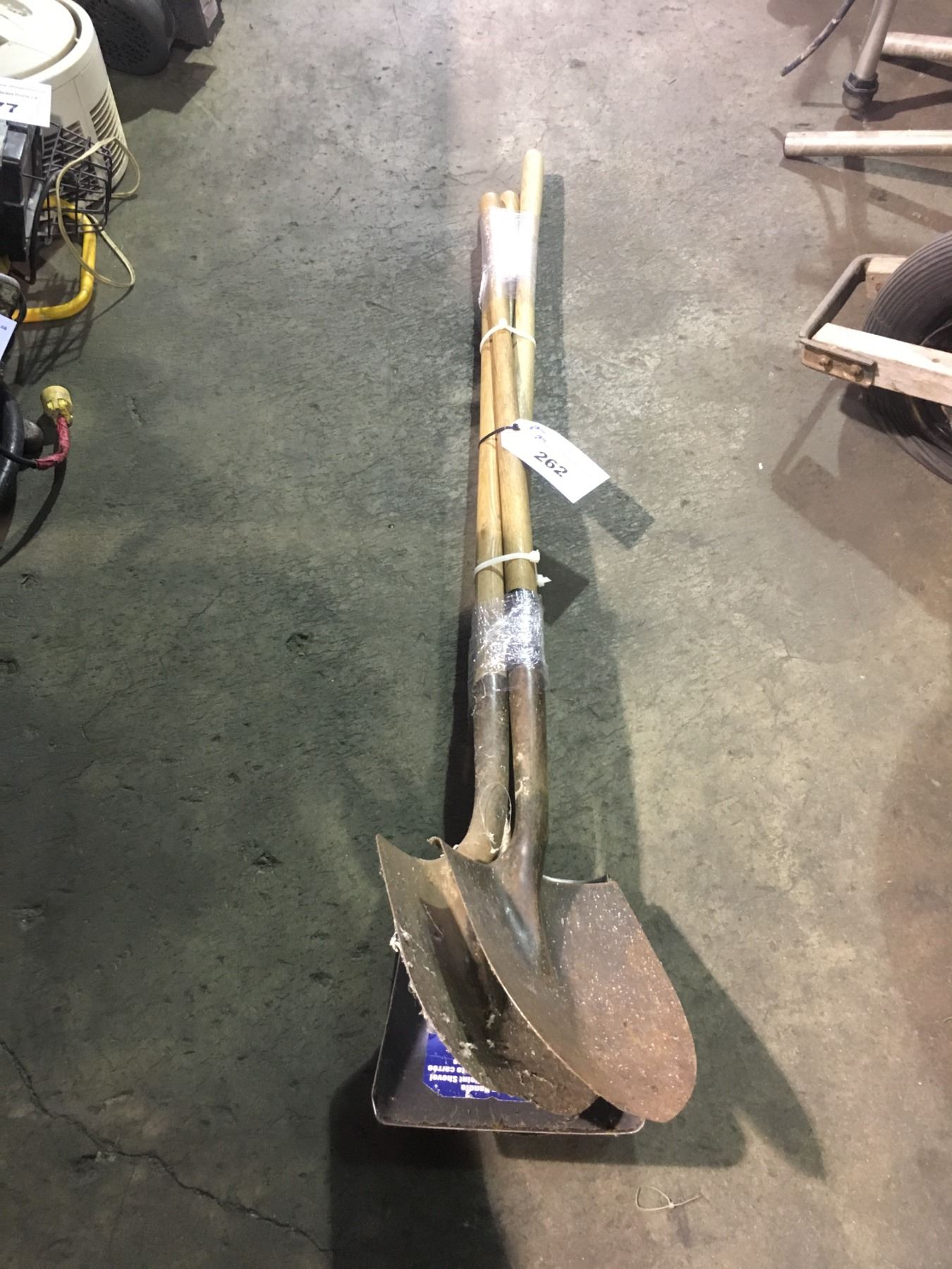 LOT OF ASSORTED WOOD HANDLE INDUSTRIAL SHOVELS