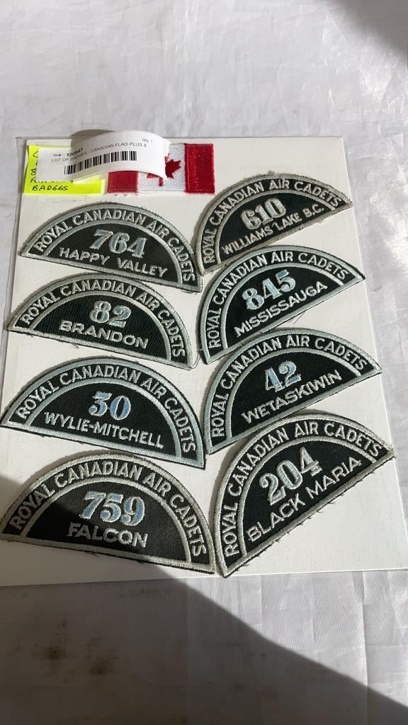 LOT OF BADGES - CANADIAN FLAG PLUS 8 ROYAL CANADIAN AIR CADETS
