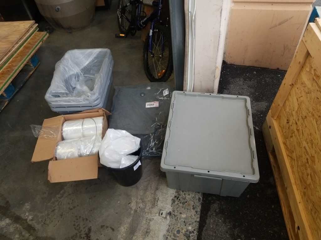 LOT OF BINS, BULK BAG ROLLS AND CAR MATS