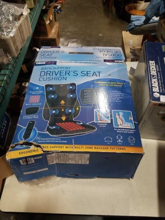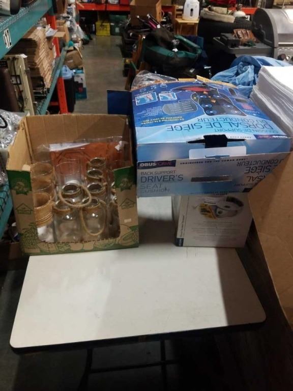 LOT OF BURLAP WRAP GLASSES, BLACK AND DECKER STEAMER AND OBUS FORM DRIVERS SEAT HEATER