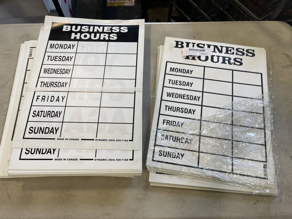 LOT OF BUSINESS HOUR SIGNS