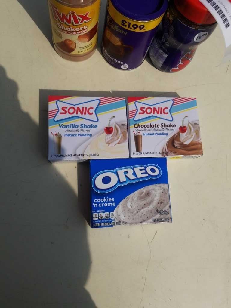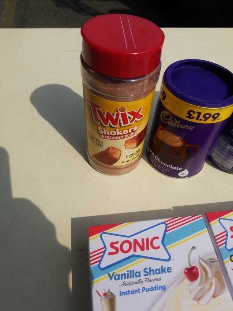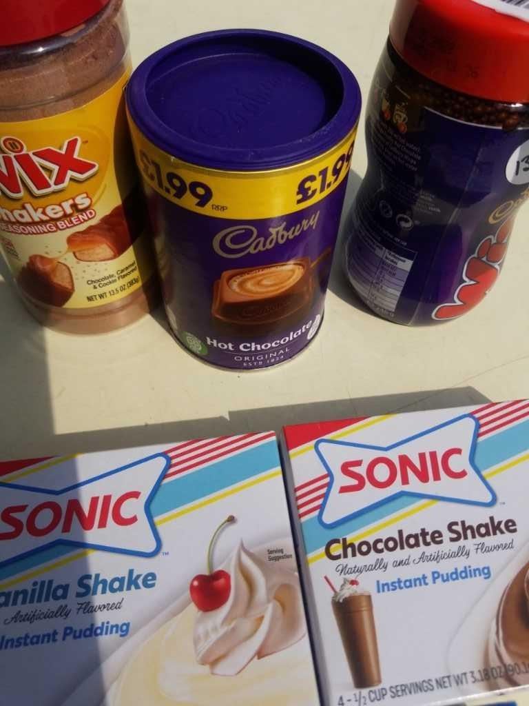LOT OF CADBURY HOT CHOCOLATE FROTHY CHOCOLATE AND TWIX DRINK MIXES WITH PUDDING/ PIE FILLING POWDER- BB 2021/2023