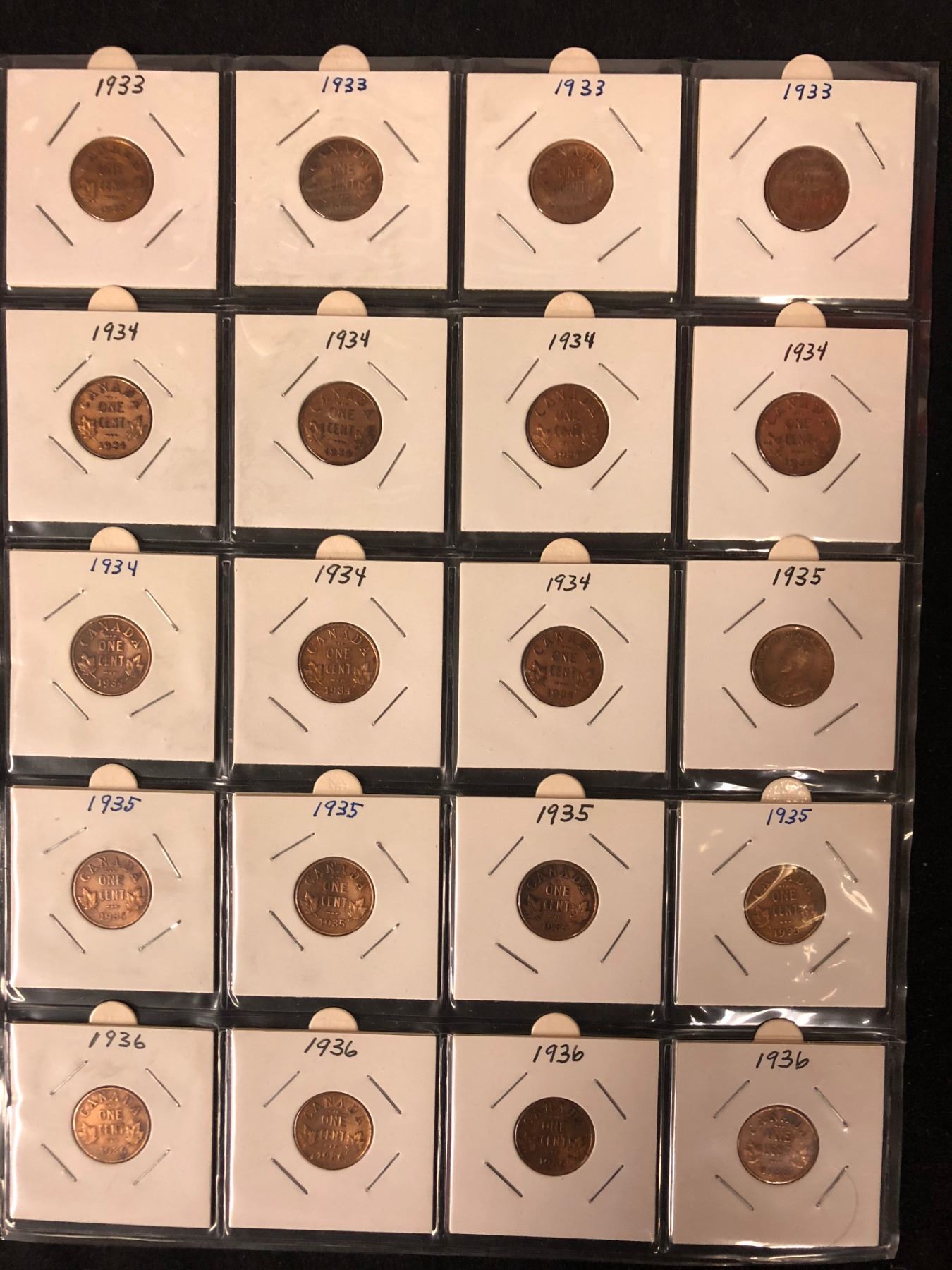 LOT OF CANADIAN PENNY'S 1933-1936