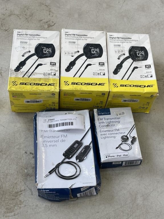 LOT OF CAR CORDS, TRANSMITTERS, ETC