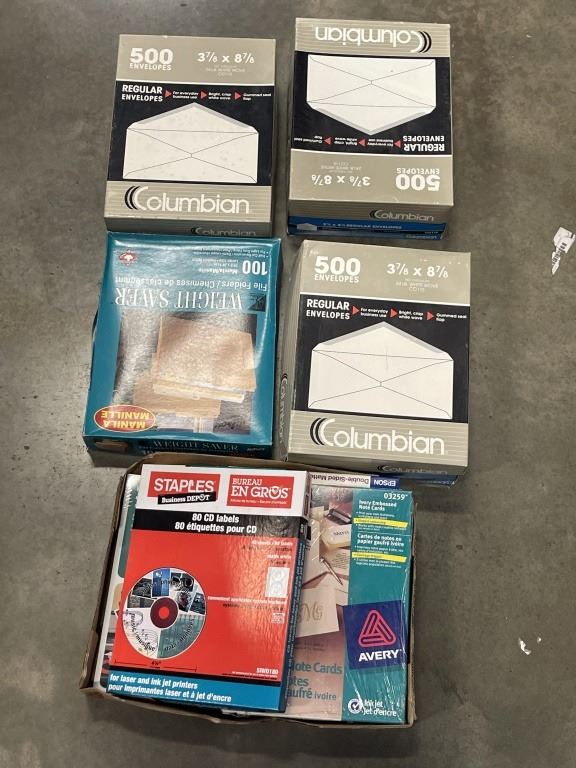 LOT OF CD LABELS, ENVELOPES, EMBOSSED NOTE CARDS ETC