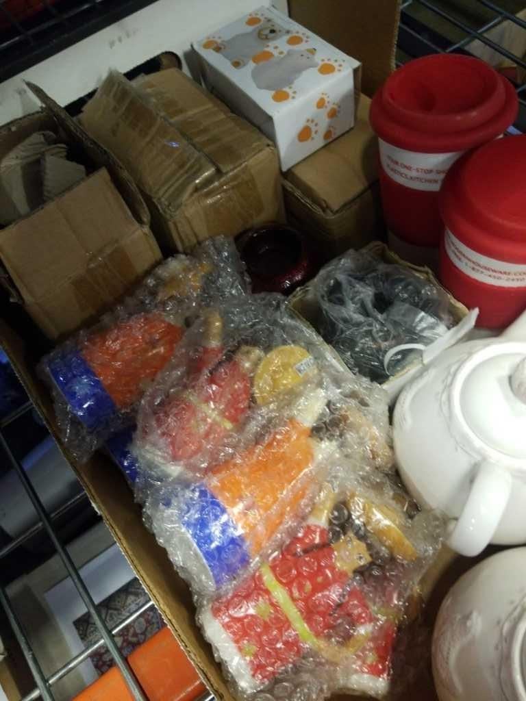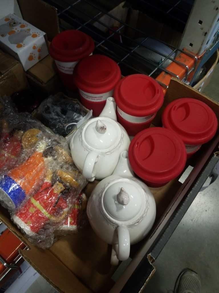 LOT OF CERAMICS, TEAPOTS, OIL AND VINEGARS, TEALIGHT CANDLE HOLDERS, COFFEE MUGS