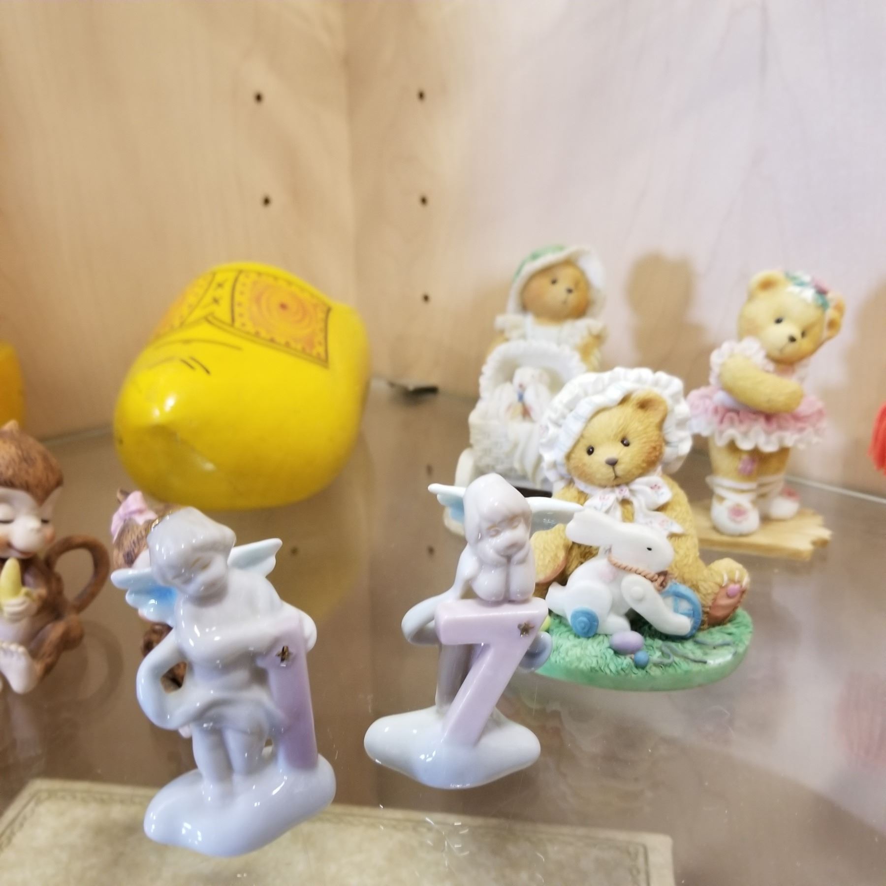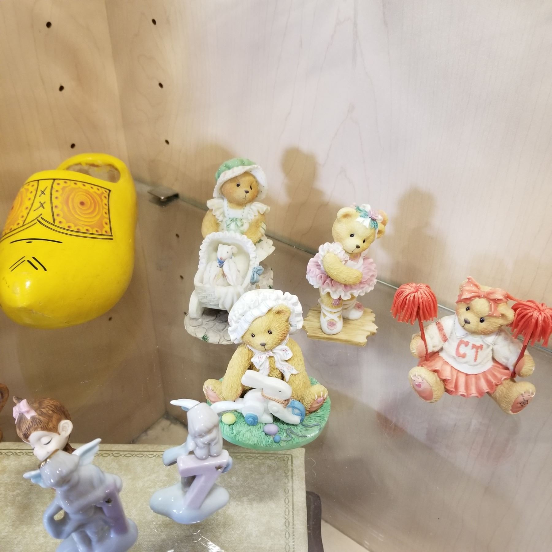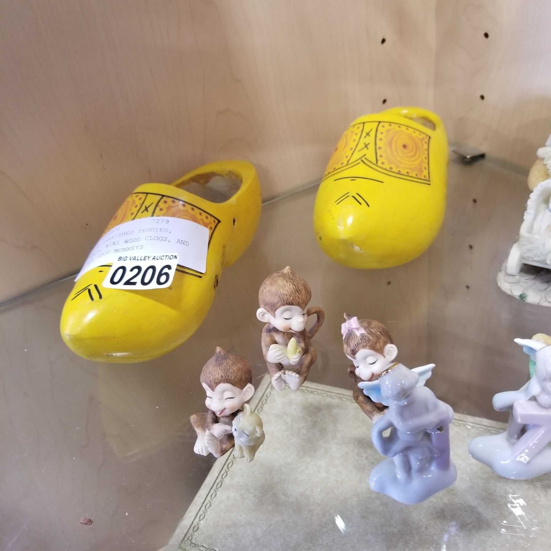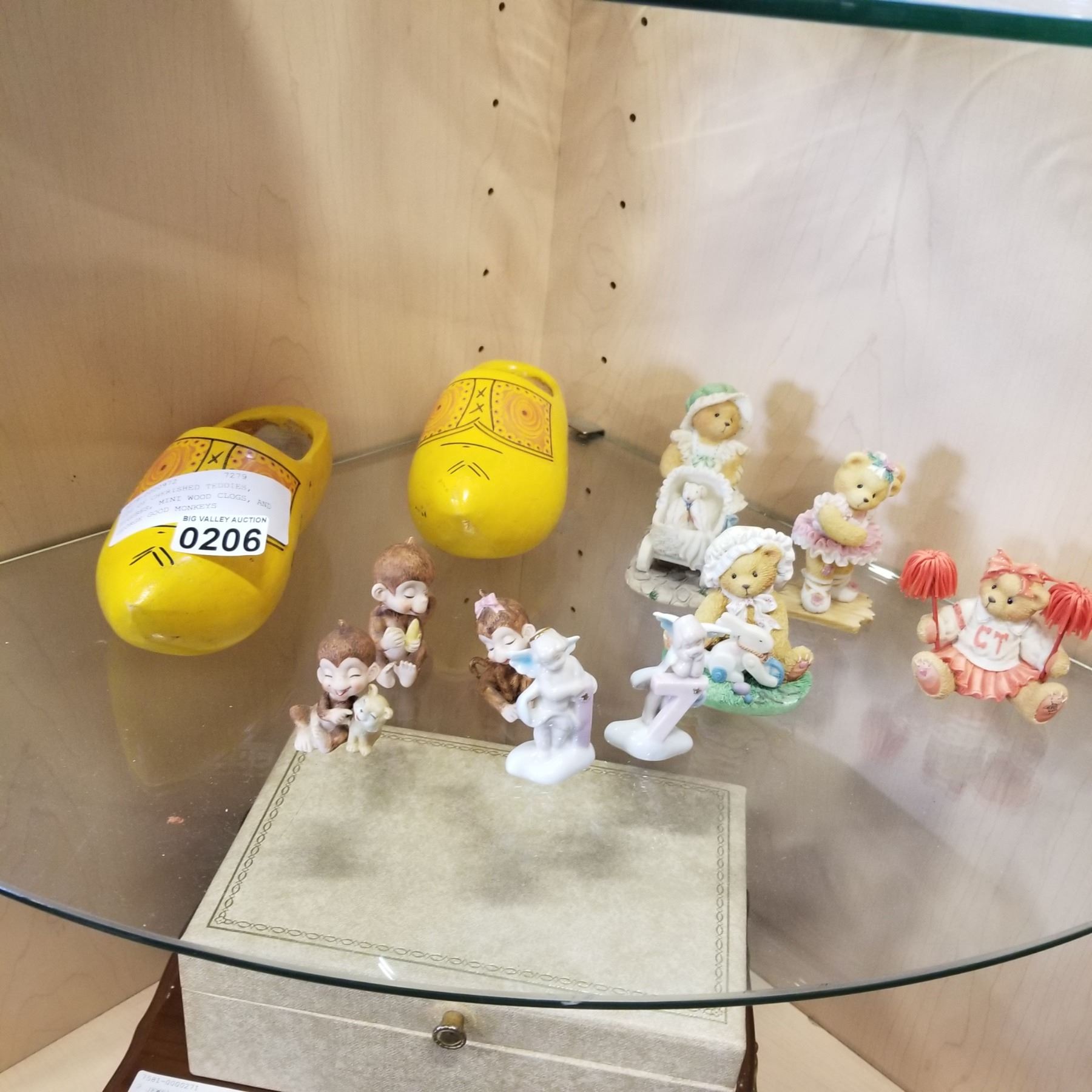 LOT OF CHERISHED TEDDIES, FIGURES, MINI WOOD CLOGS, AND GEORGE GOOD MONKEYS