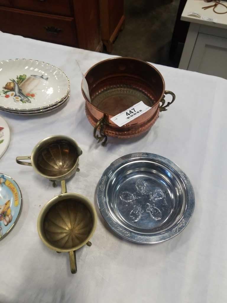 LOT OF CHINA DECORATIVE PLATES AND METAL SERVING PIECES - COPPER, BRASS