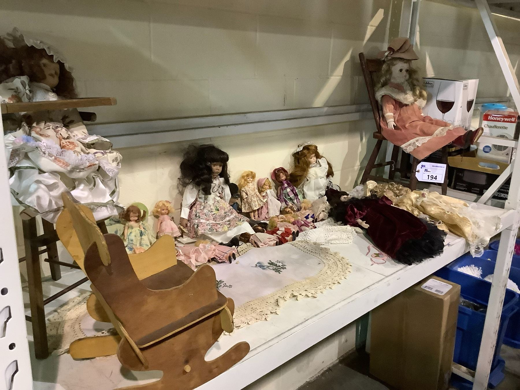 LOT OF COLLECTABLE DOLLS, DOLL CHAIRS,