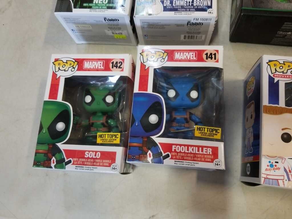 LOT OF COLLECTABLE FIGURES IN BOXES POP FIGURES MARVEL, MATRIX, BACK TO THE FUTURE, TALLADEGA NIGHTS