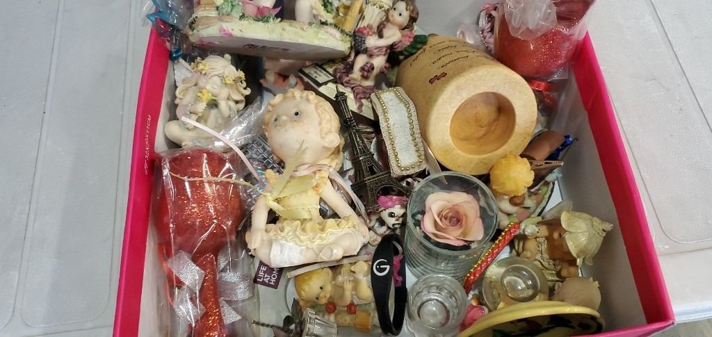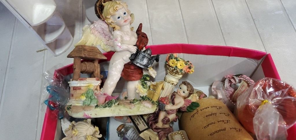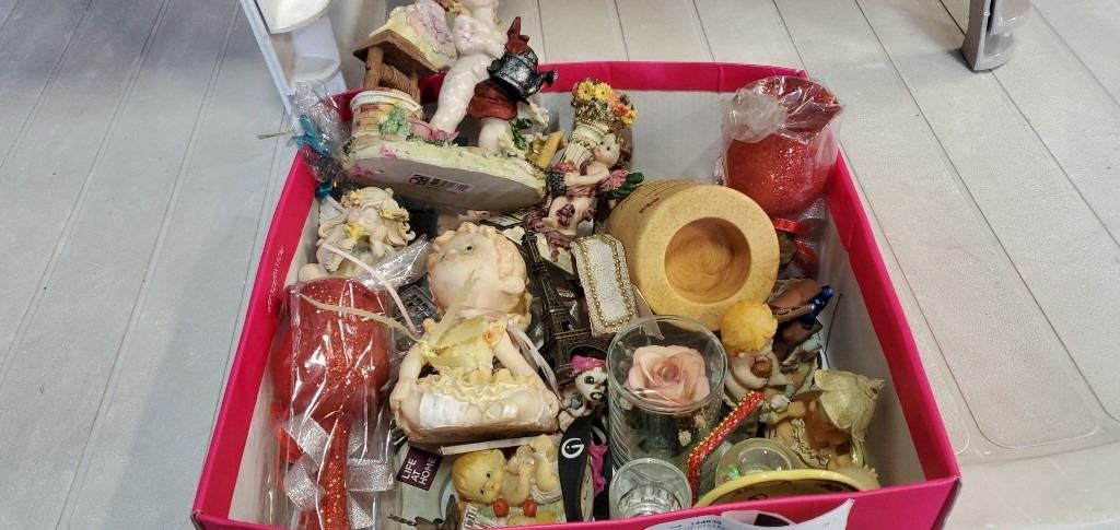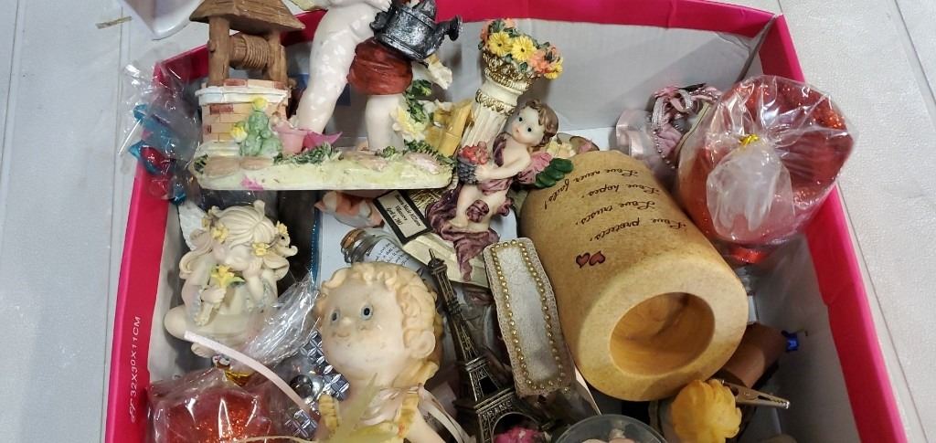LOT OF COLLECTIBLES AND FIGURINES, CANDLEHOLDERS, ETC