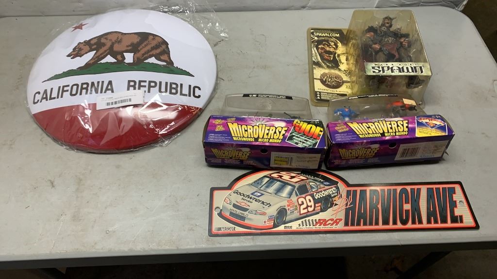 LOT OF COLLECTIBLES INCLUDING NASCAR AND ACTION FIGURES