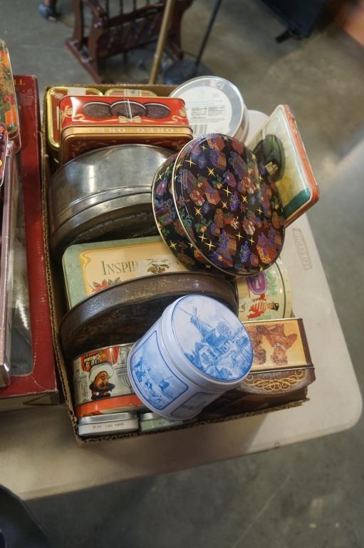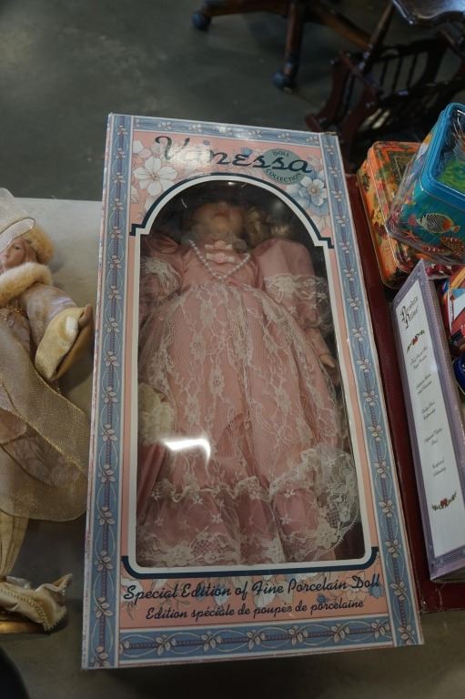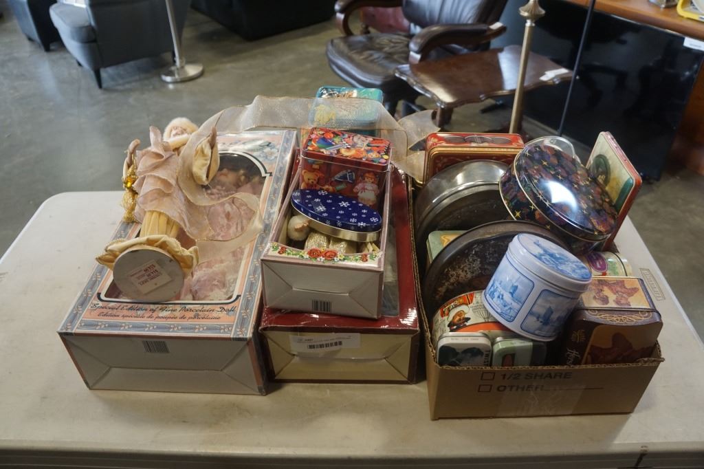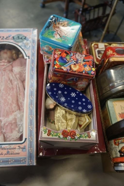 LOT OF COLLECTOR TINS AND PORCELAIN DOLLS
