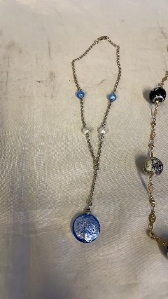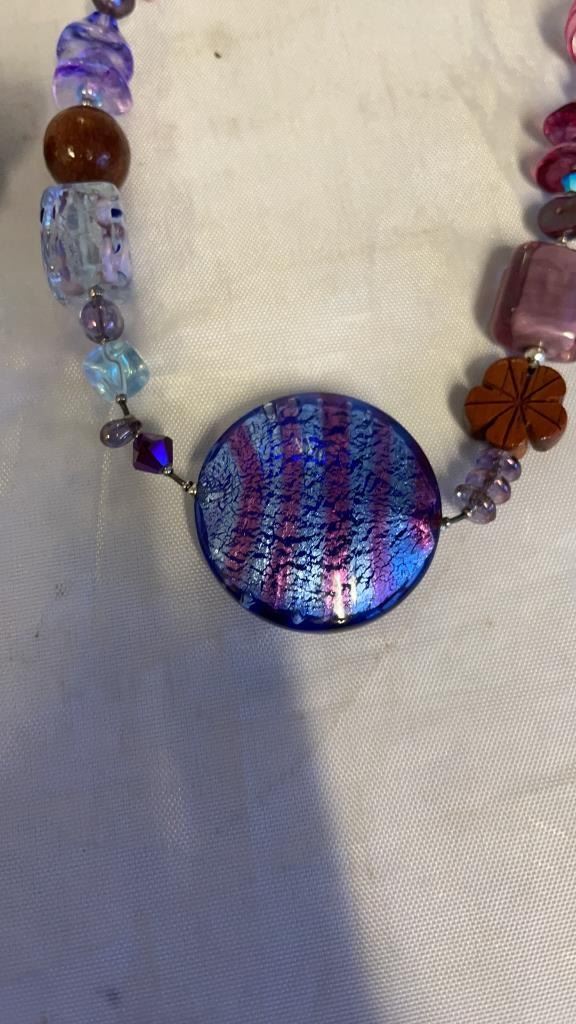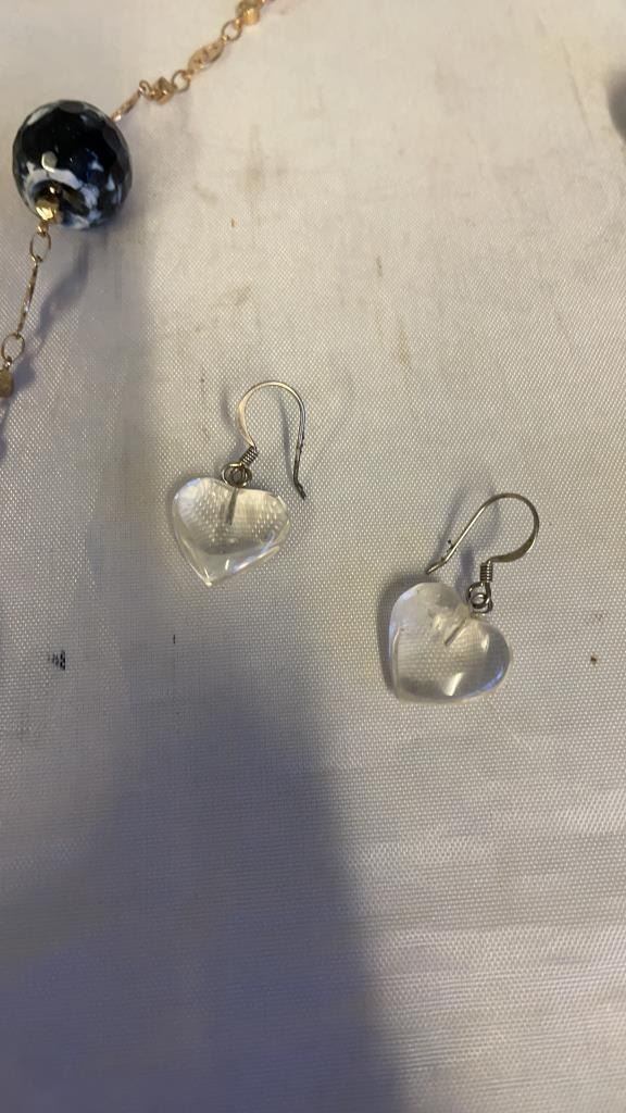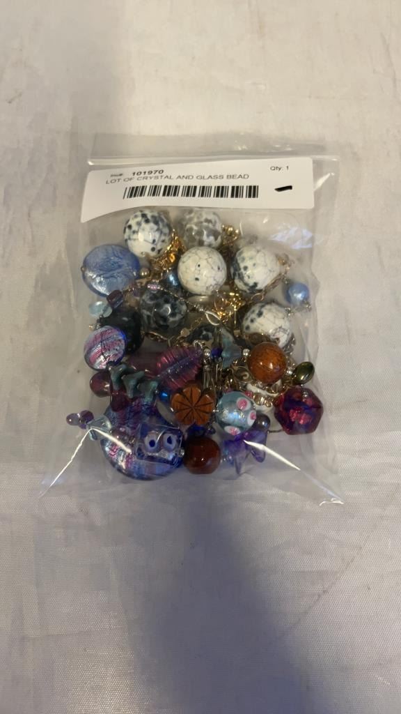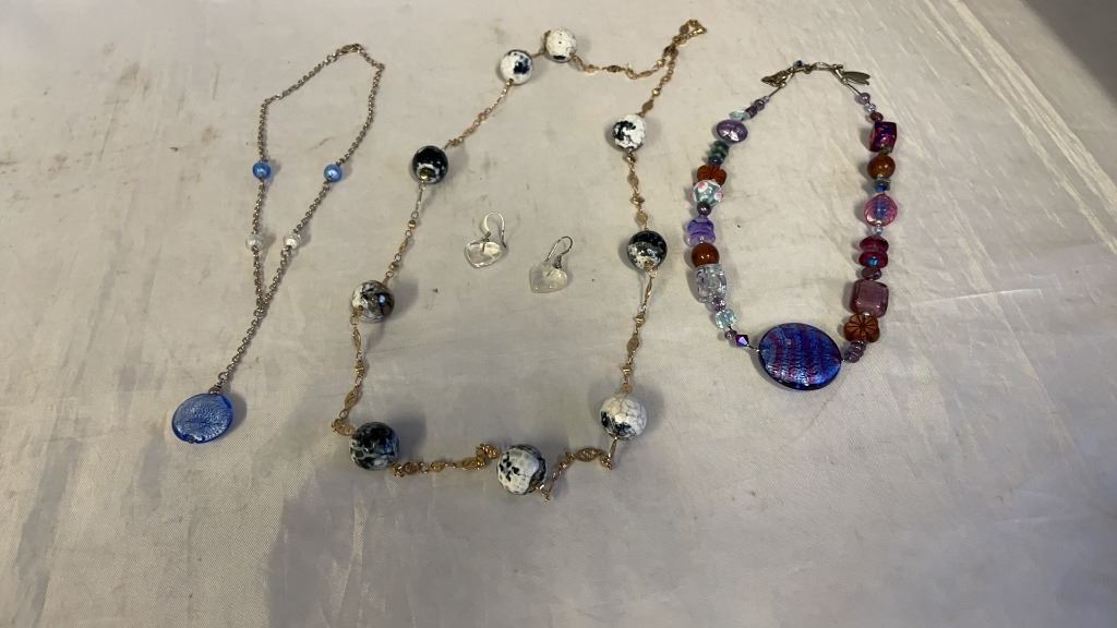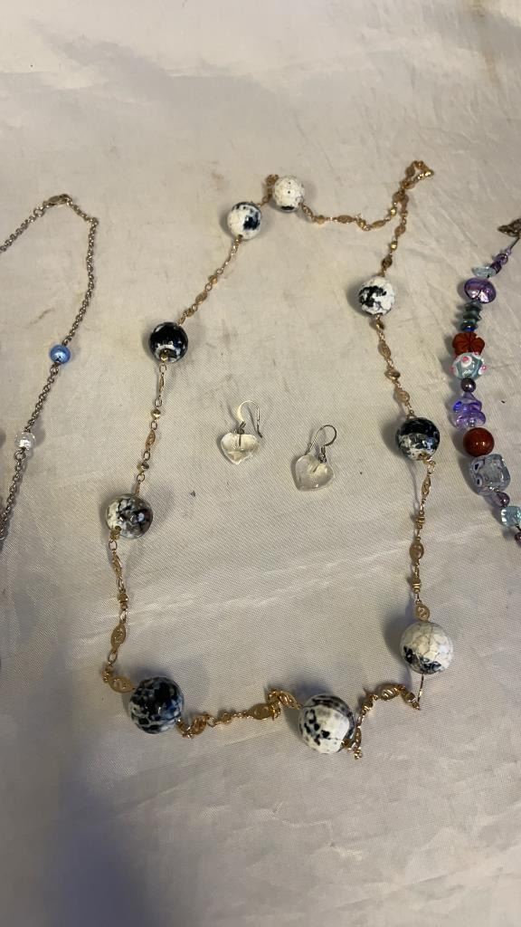LOT OF CRYSTAL AND GLASS BEAD JEWLERY - 3 NECKLACES, 1 PAIR EARRINGS