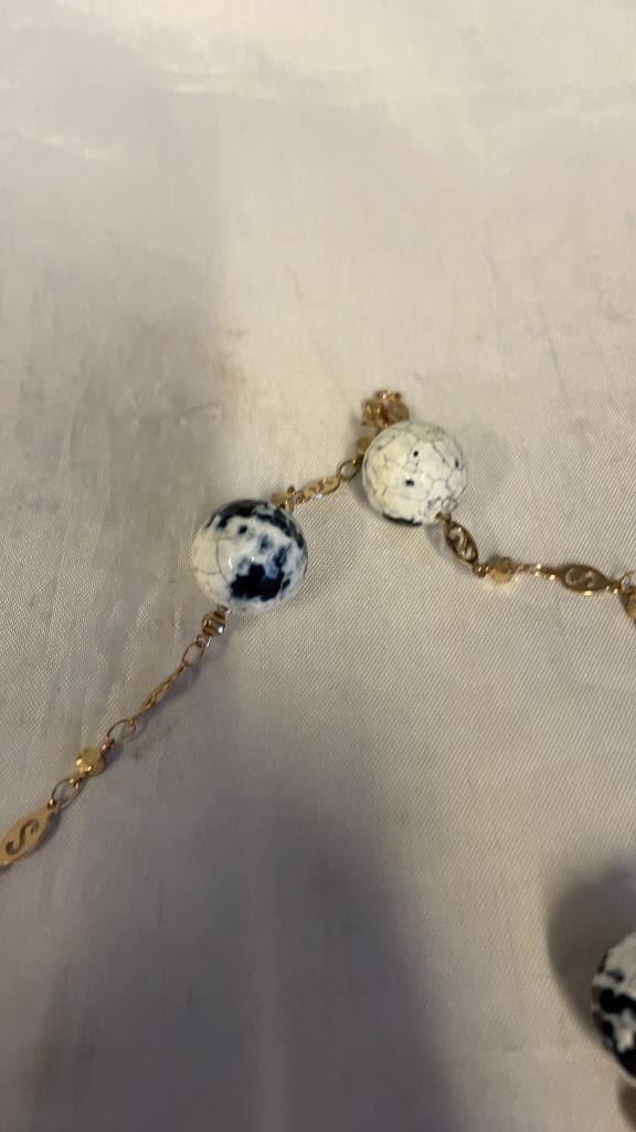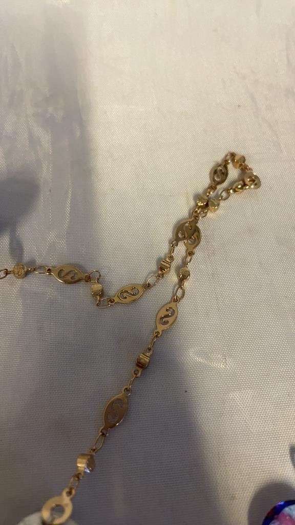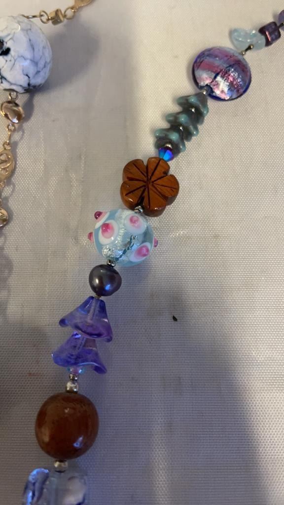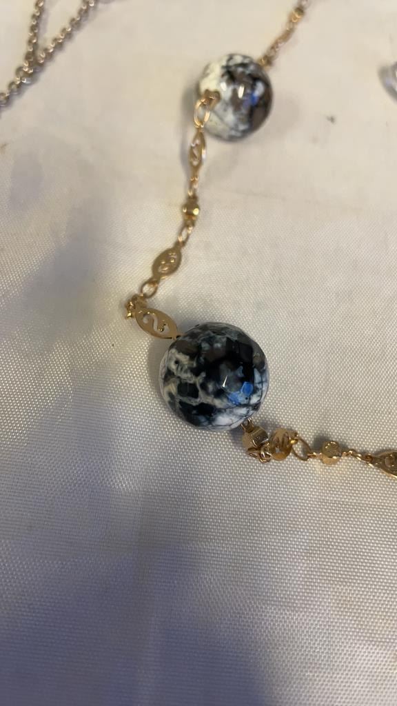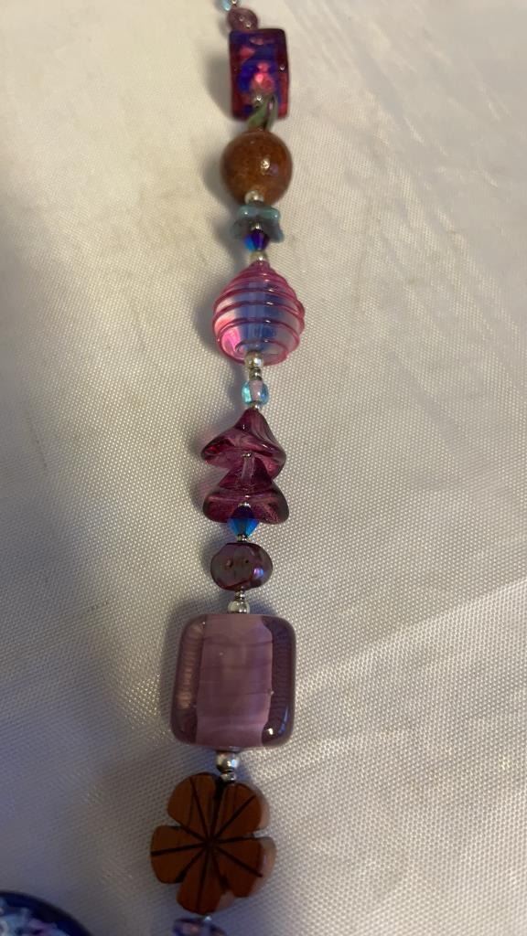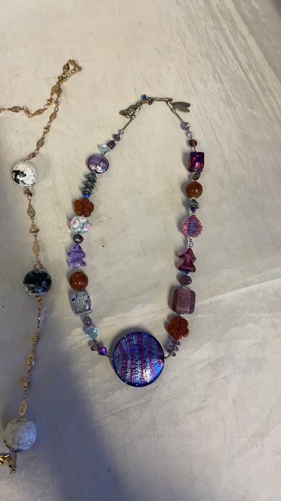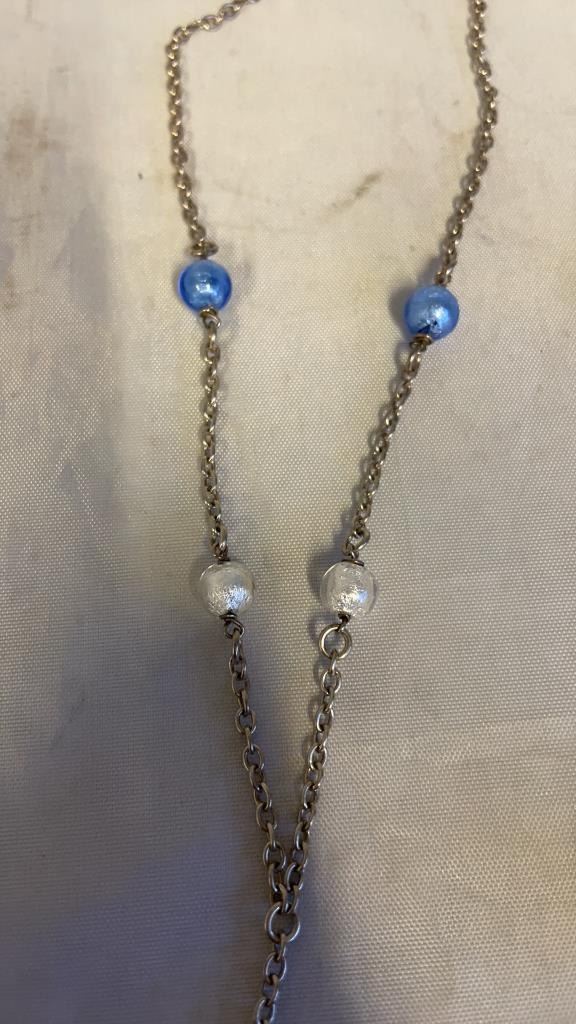 LOT OF CRYSTAL AND GLASS BEAD JEWLERY - 3 NECKLACES, 1 PAIR EARRINGS