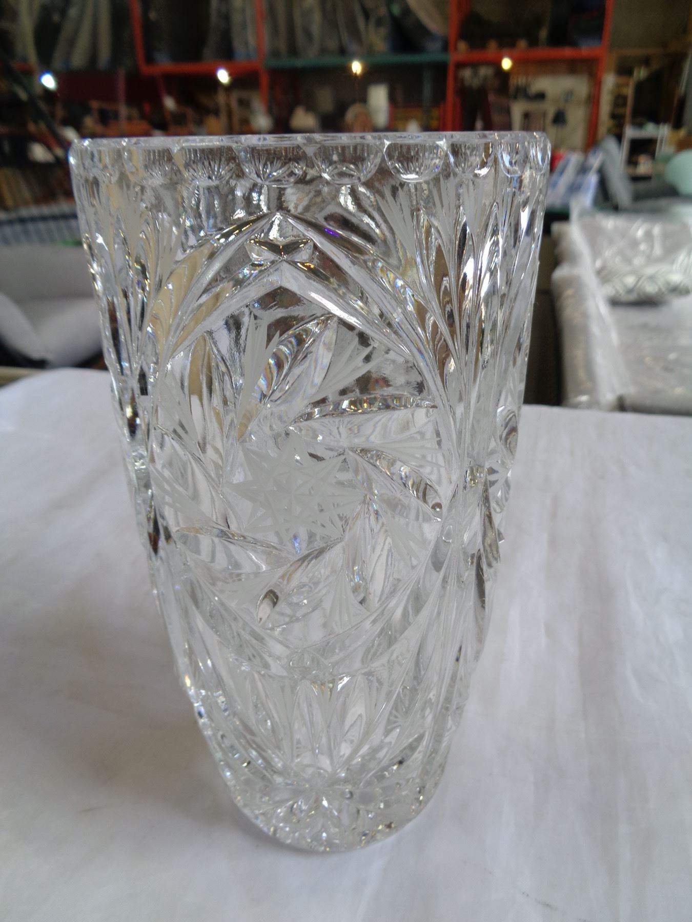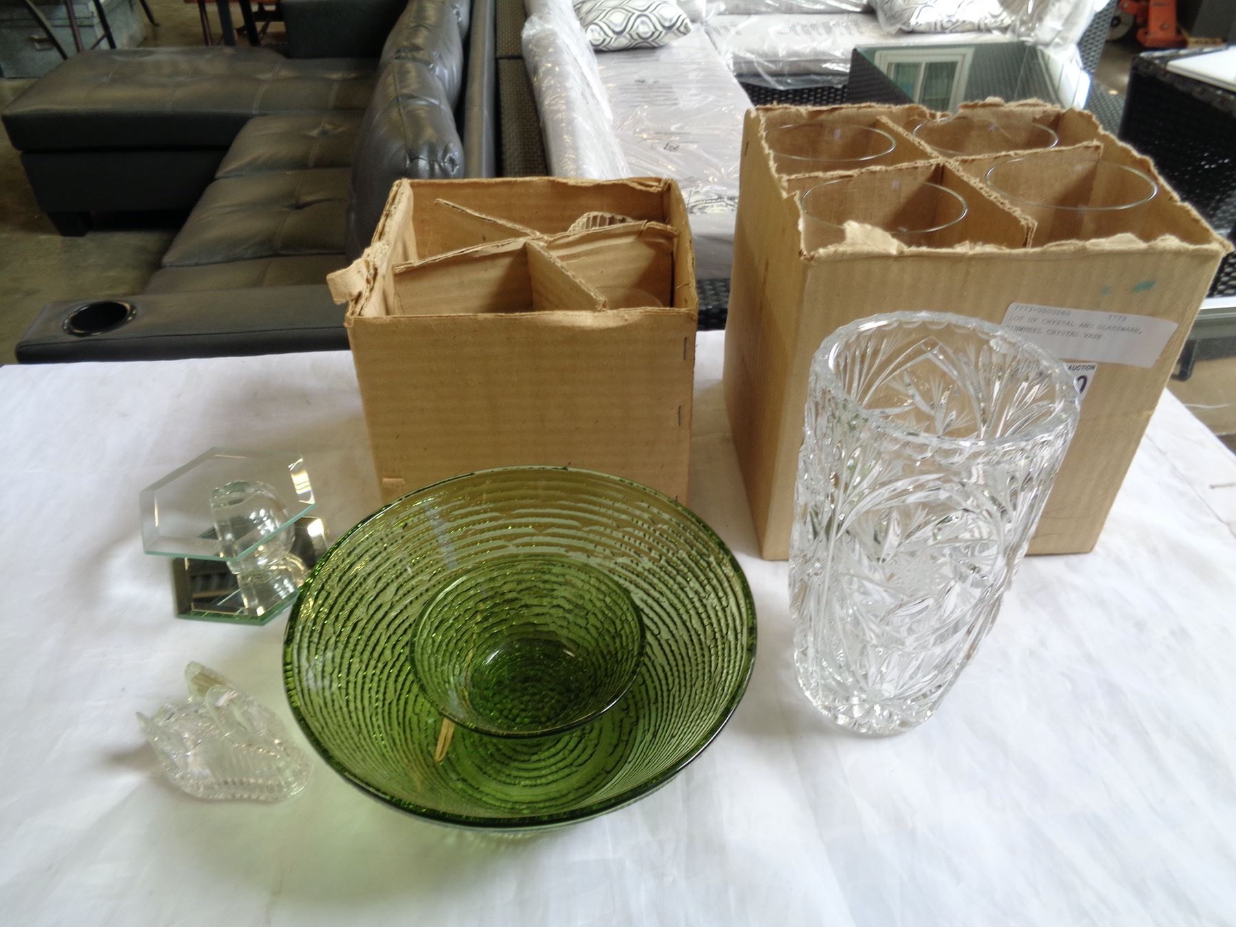 LOT OF CRYSTAL AND GLASSWARE, PINWHEEL CRYSTAL VASE
