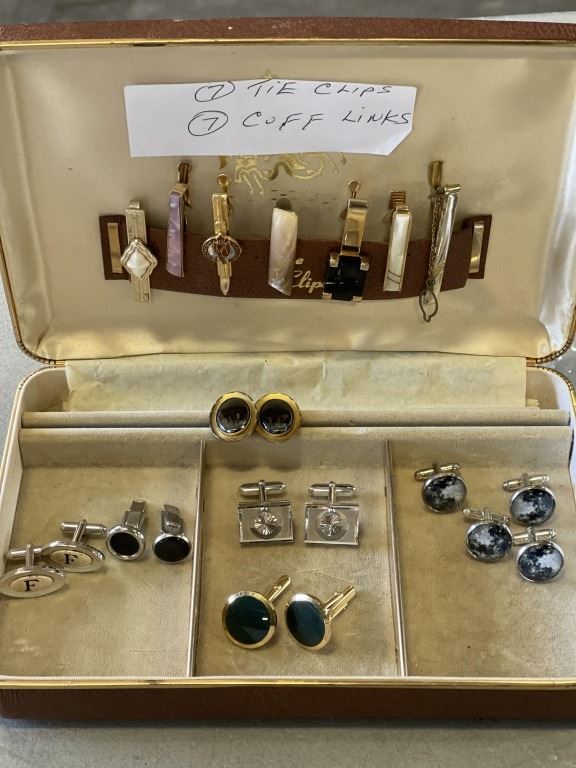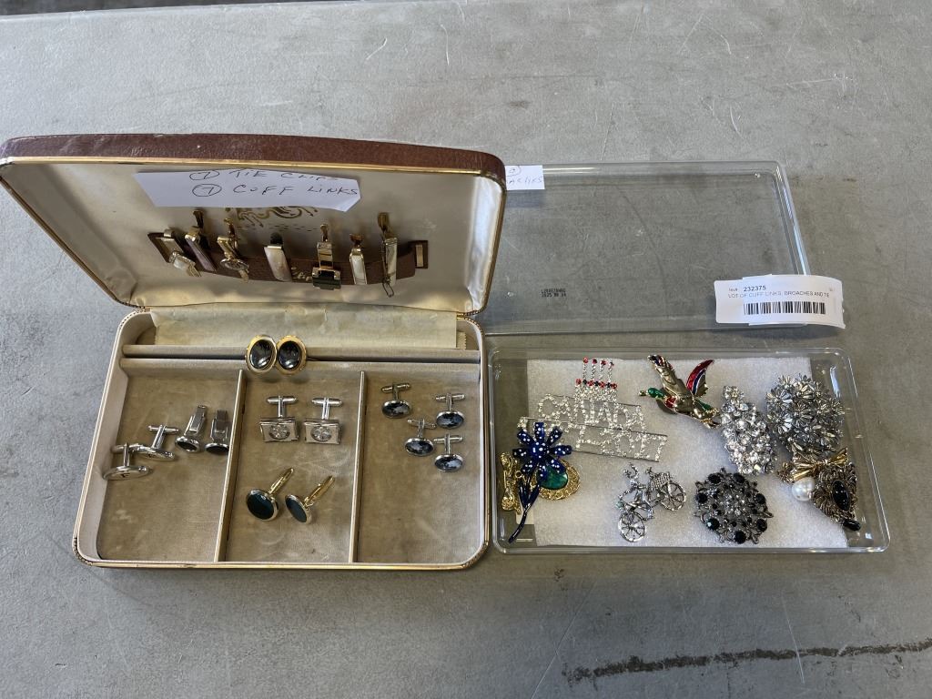 LOT OF CUFF LINKS, BROACHES AND TIE CLIPS