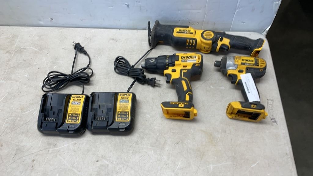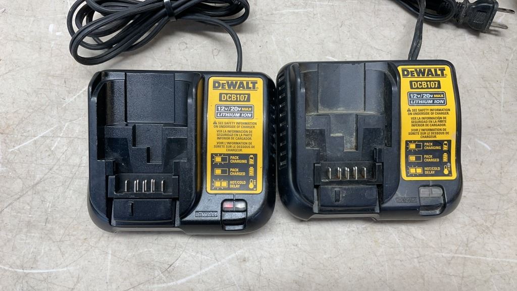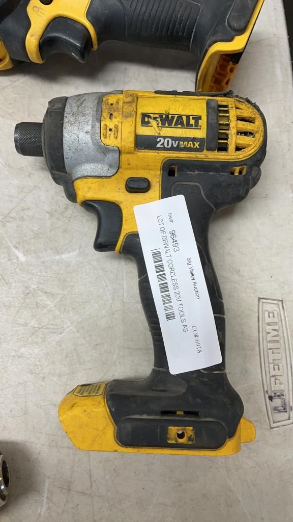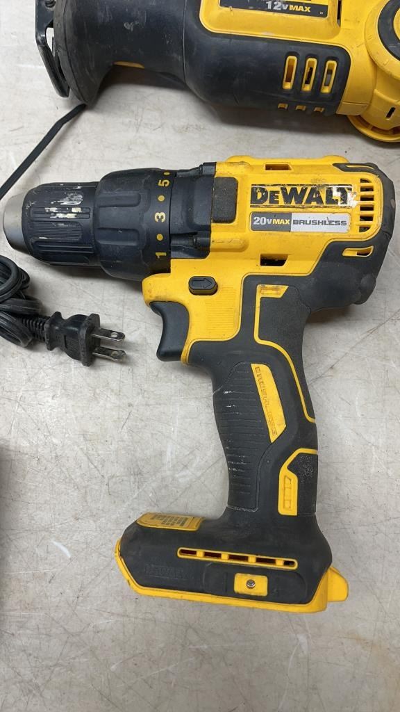 LOT OF DEWALT CORDLESS 20V TOOLS AS FOUND WITH 2 CHARGERS NO BATTERIES