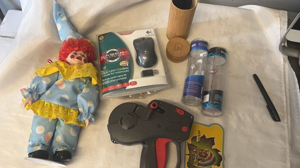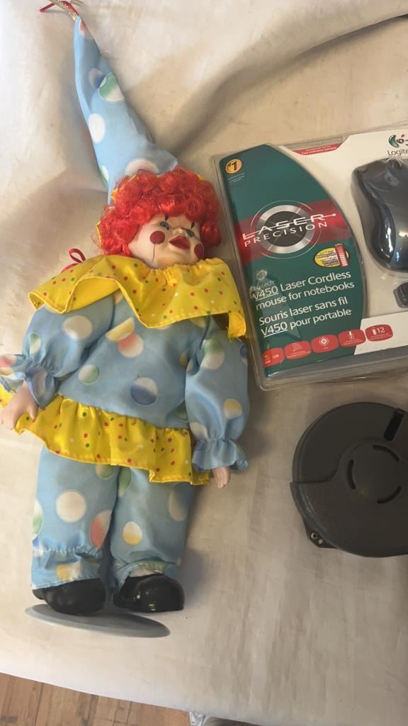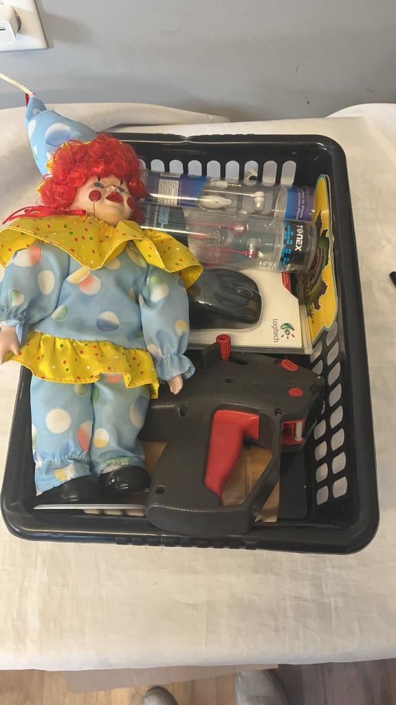 LOT OF ELECTRONICS AND CLOWN FIGURE