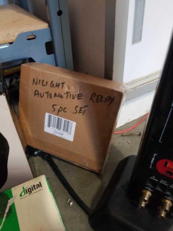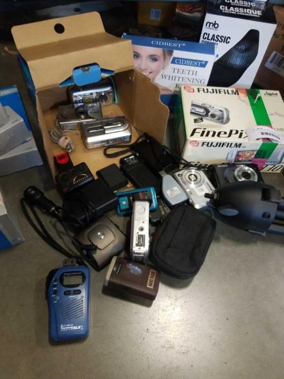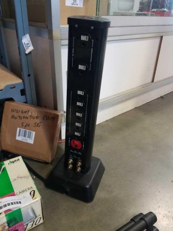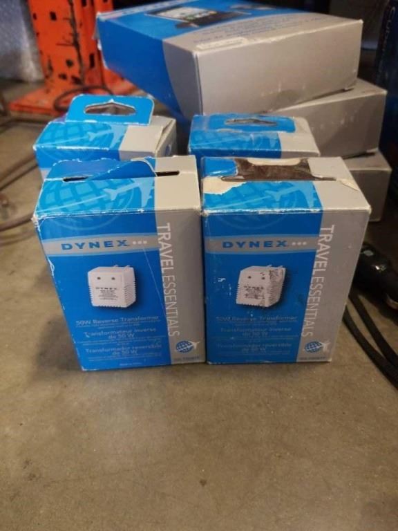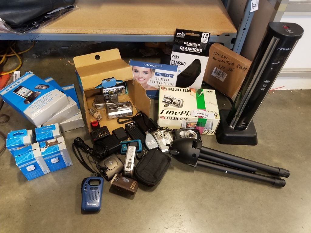 LOT OF ELECTRONICS, WALKIE TALKIE, 50W REVERSE TRANSFORMERS, TRIPOD, POWER BAR, ETC