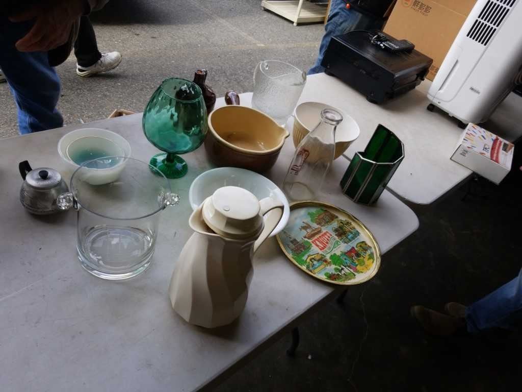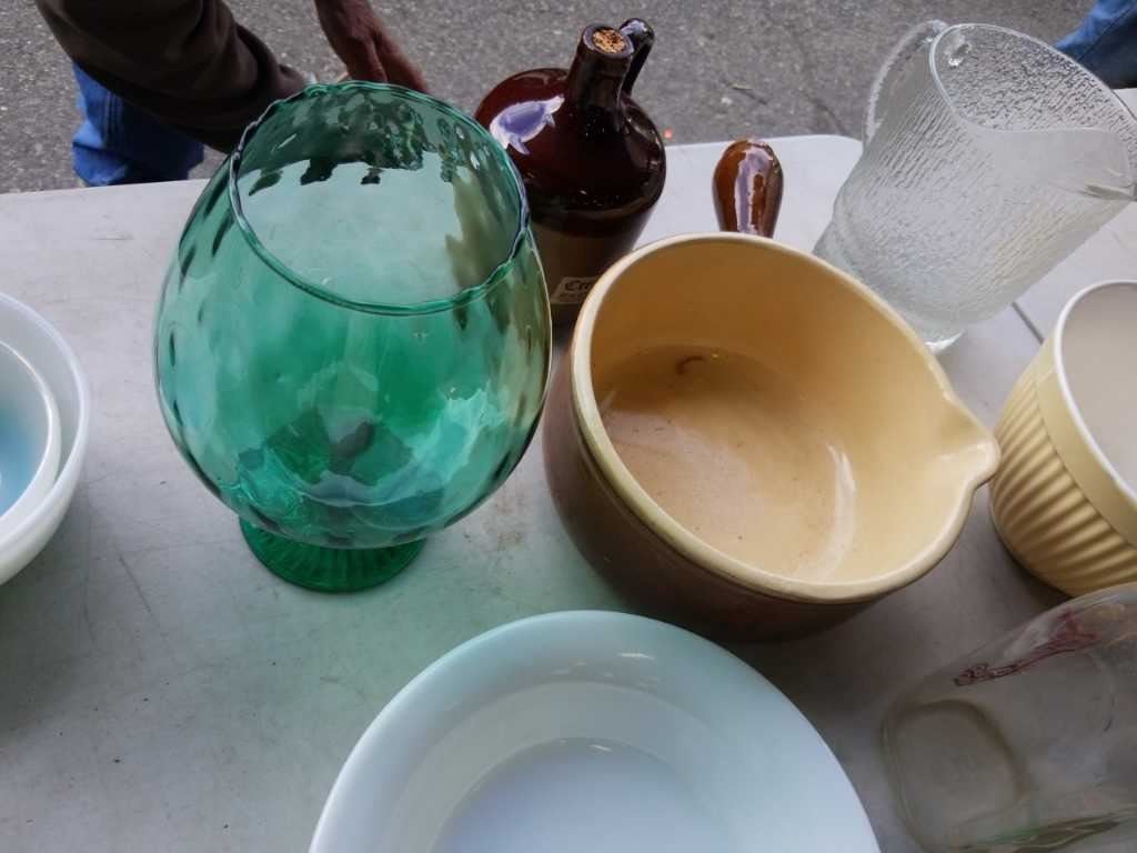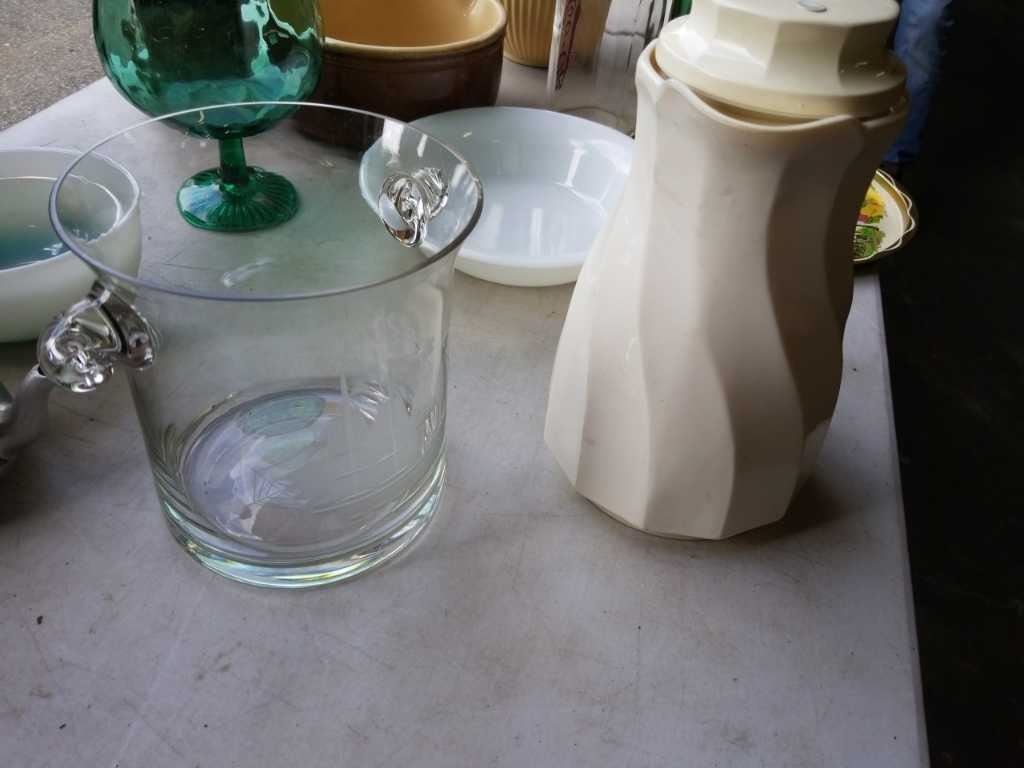LOT OF GLASSWARE, PITCHERS, CERAMICS