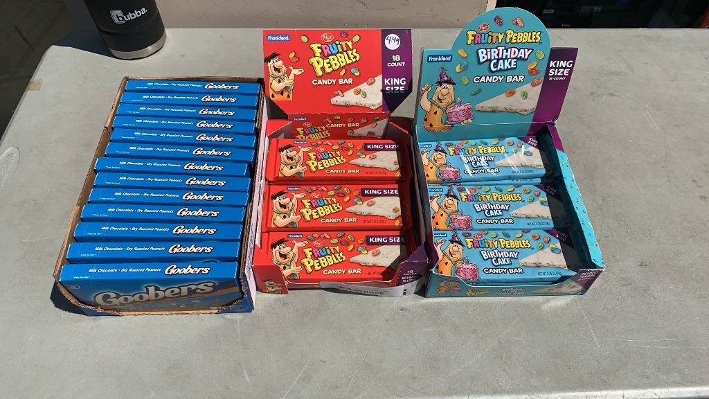 LOT OF GOOBERS MILK CHOCOLATE AND FRUITY PEBBLES CANDY BARS - BB AUG 2023