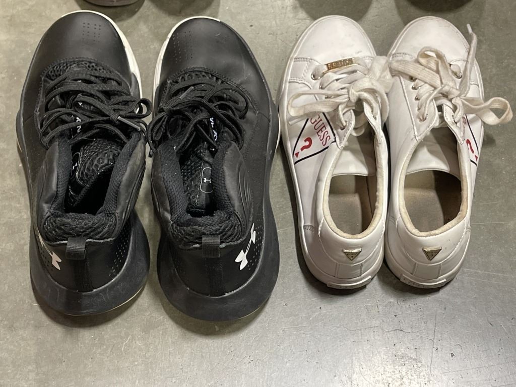 LOT OF GUESS SIZE 7.5, UNDER ARMOUR SIZE 8, SKETCHERS SIZE 7 STEEL TOE SHOES WITH CHINESE LAUNDRY KN