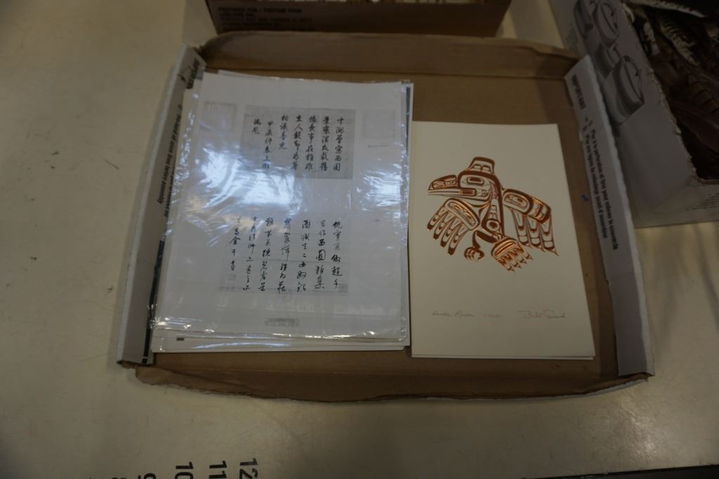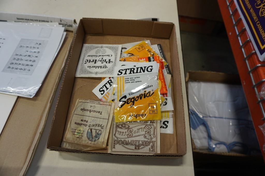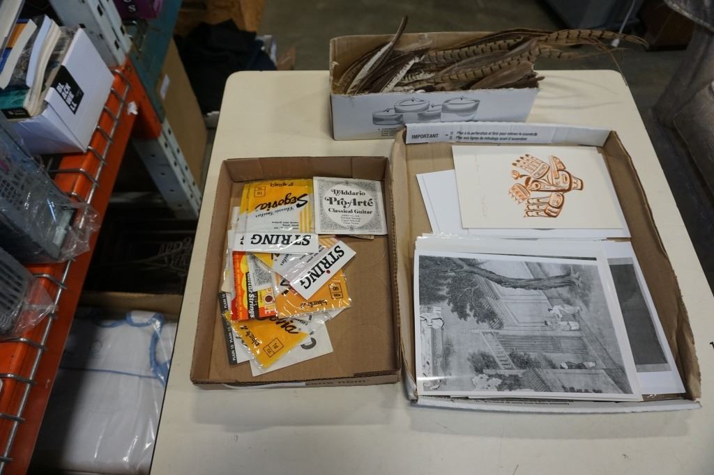 LOT OF GUITAR STRINGS, PRINTS, BILL REID CARDS, FEATHERS
