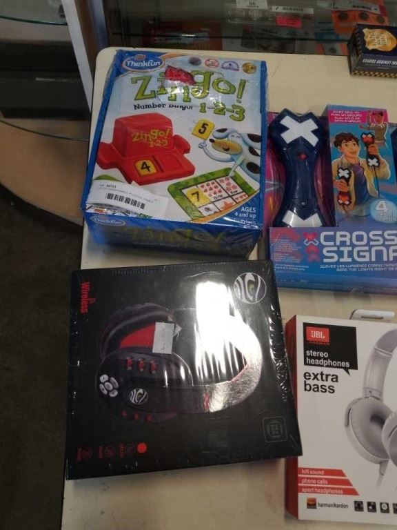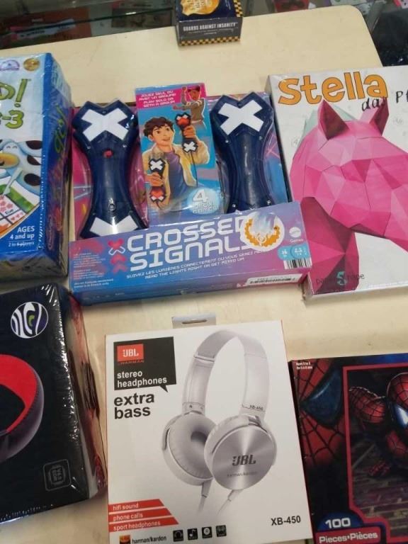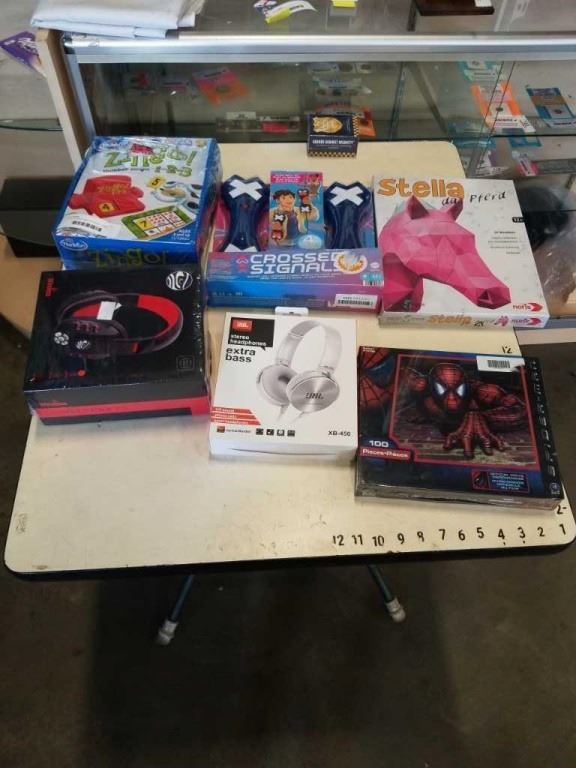 LOT OF HEADPHONES, PUZZLES, GAMES