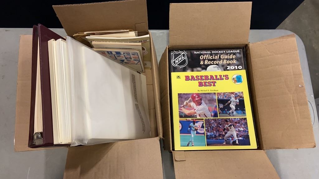LOT OF HOCKEY AND FOOTBALL YEARBOOK GUIDES, AND STAMP BOOKS NO STAMPPS ETC