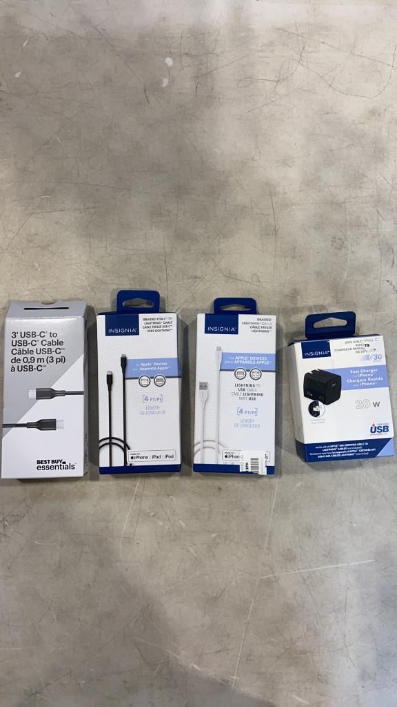 LOT OF INSIGNIA CHARGING CORDS AND WALL CHARGER