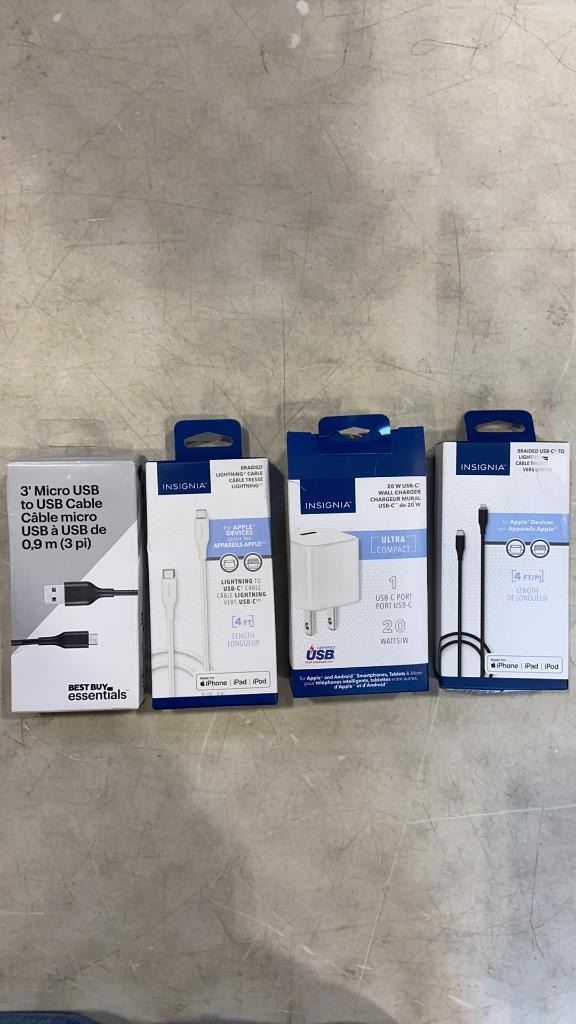 LOT OF INSIGNIA CHARGING CORDS AND WALL CHARGER