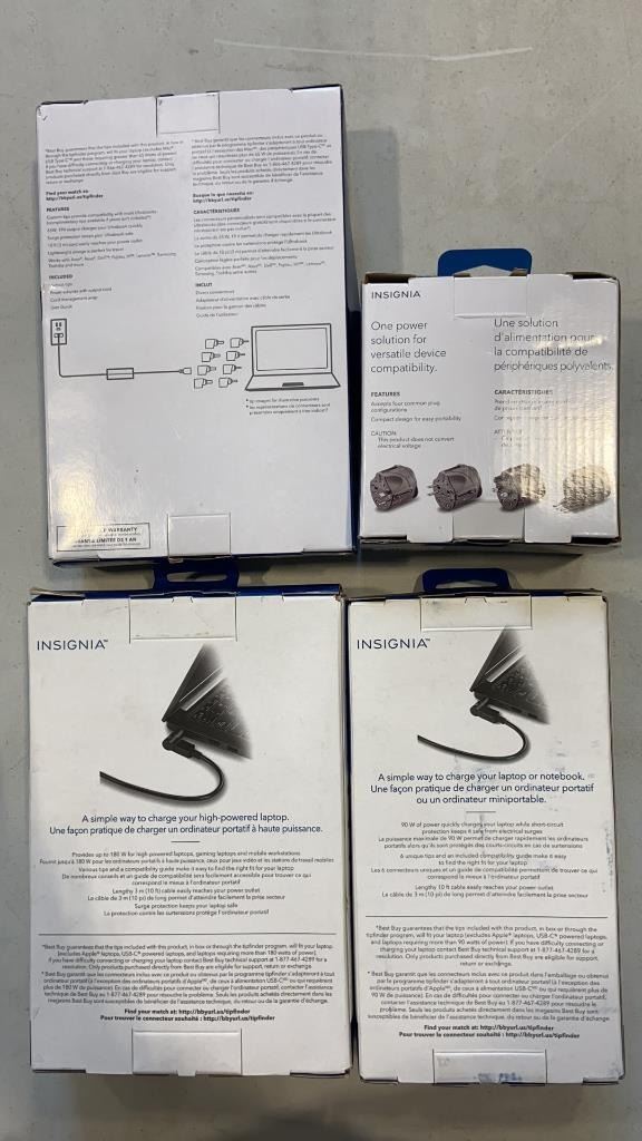 LOT OF INSIGNIA LAPTOP CHARGERS AND ADAPTERS