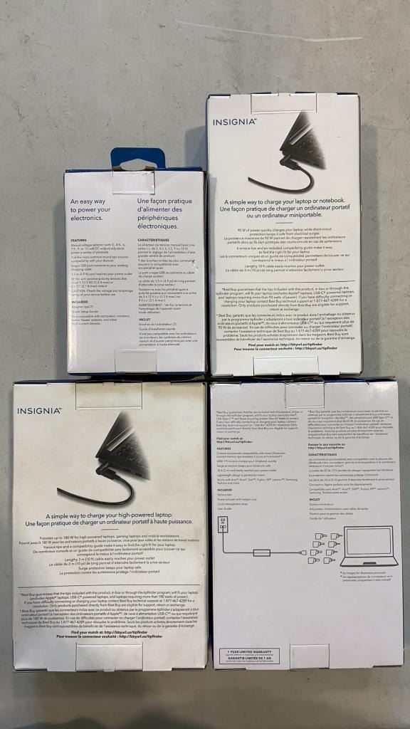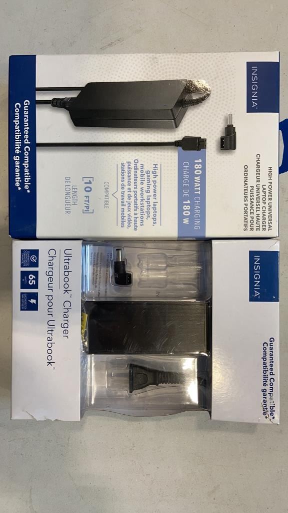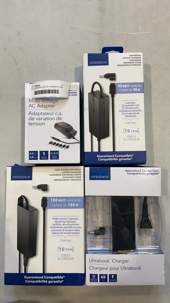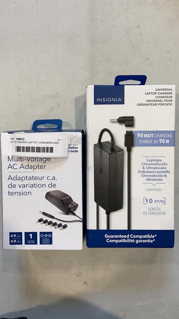 LOT OF INSIGNIA LAPTOP CHARGERS AND ADAPTERS