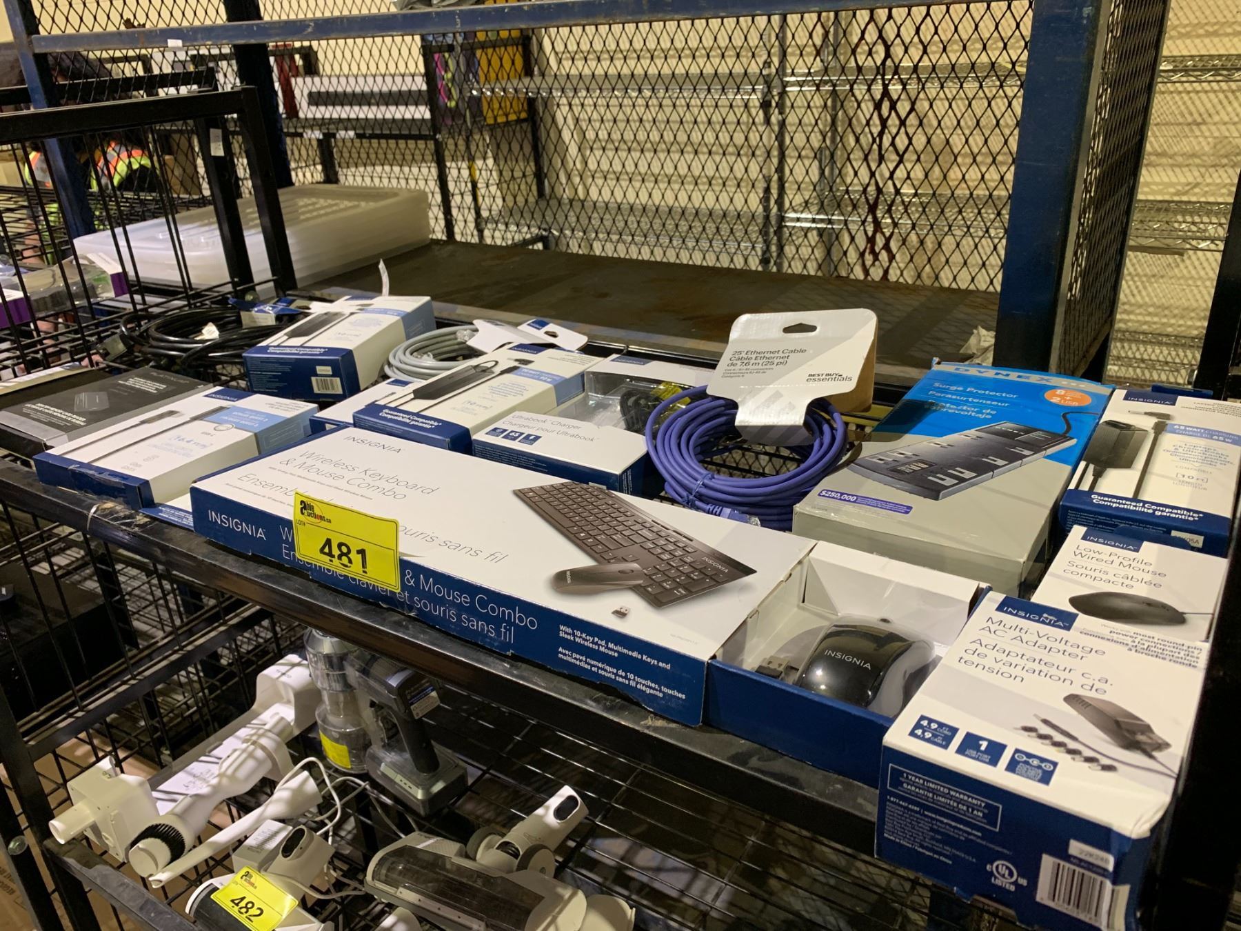 LOT OF INSIGNIA WIRELESS KEYBOARD, MOUSE, PLATINUM DESKTOP MEMORY CARD READER, INSIGNIA HEADPHONE ADAPTER AND MORE