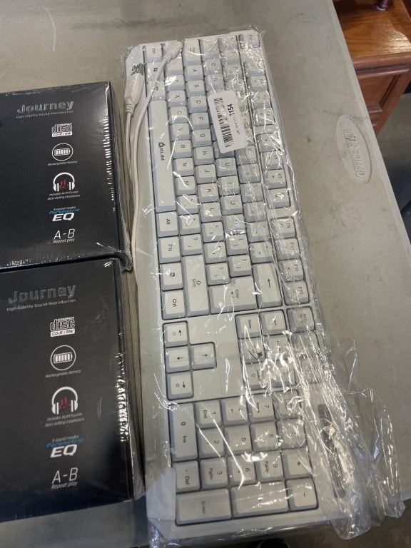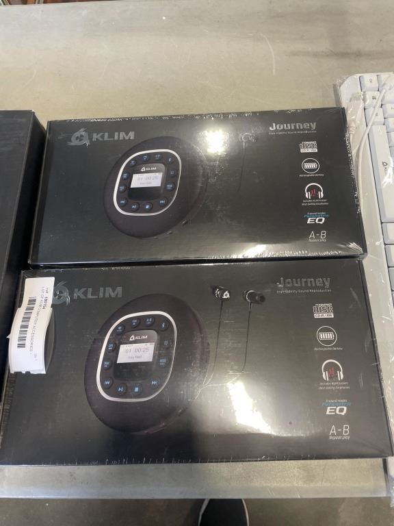 LOT OF KLIM COMPUTER ACCESSORIES - LAPTOP COOLER, KEYBOARD, AND 2 NEW/SEALED COMPACT DISC PLAYER W/ EARBUDS