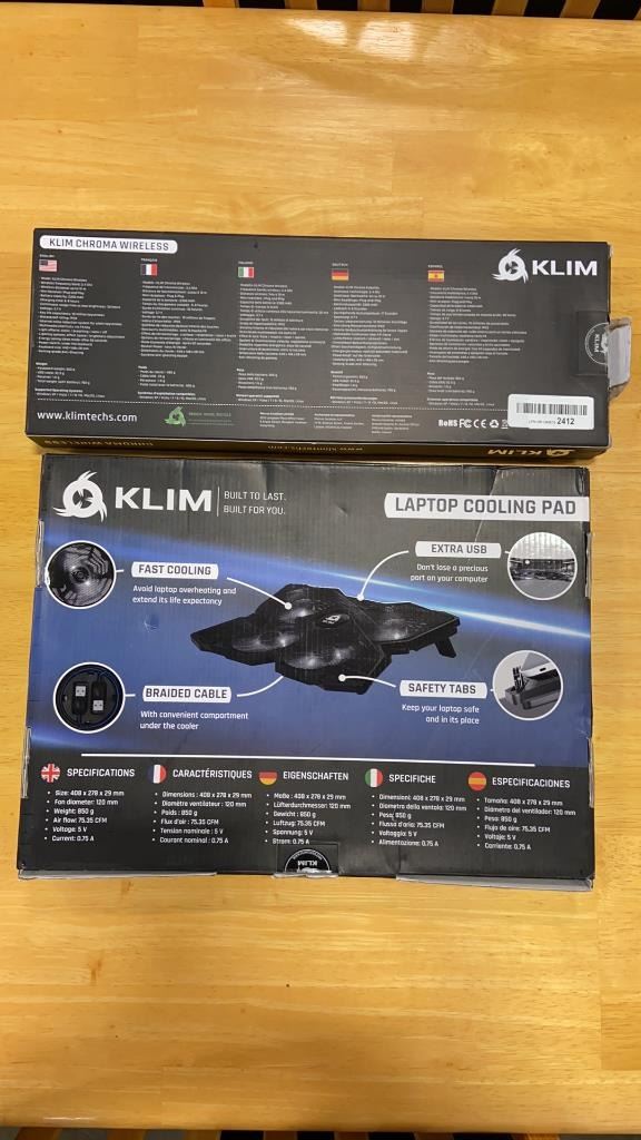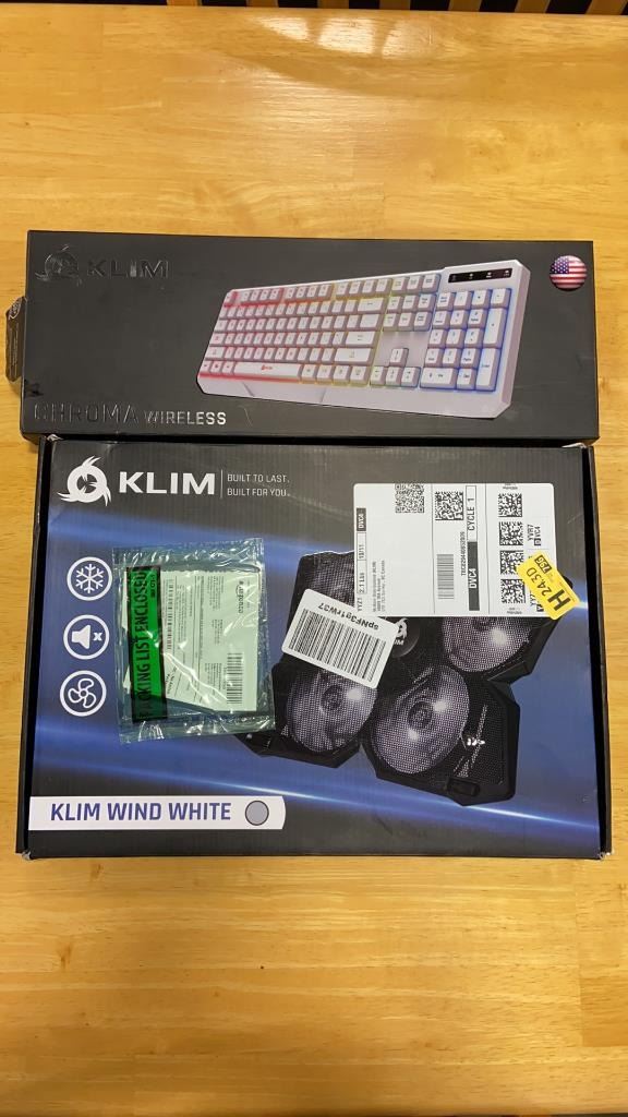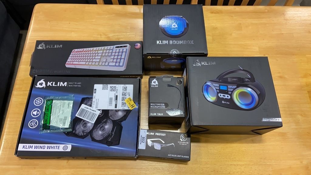 LOT OF KLIM GAMING ACCESSORIES - KEYBOARD, BOOM BOX, LAPTOP COOLER, ETC